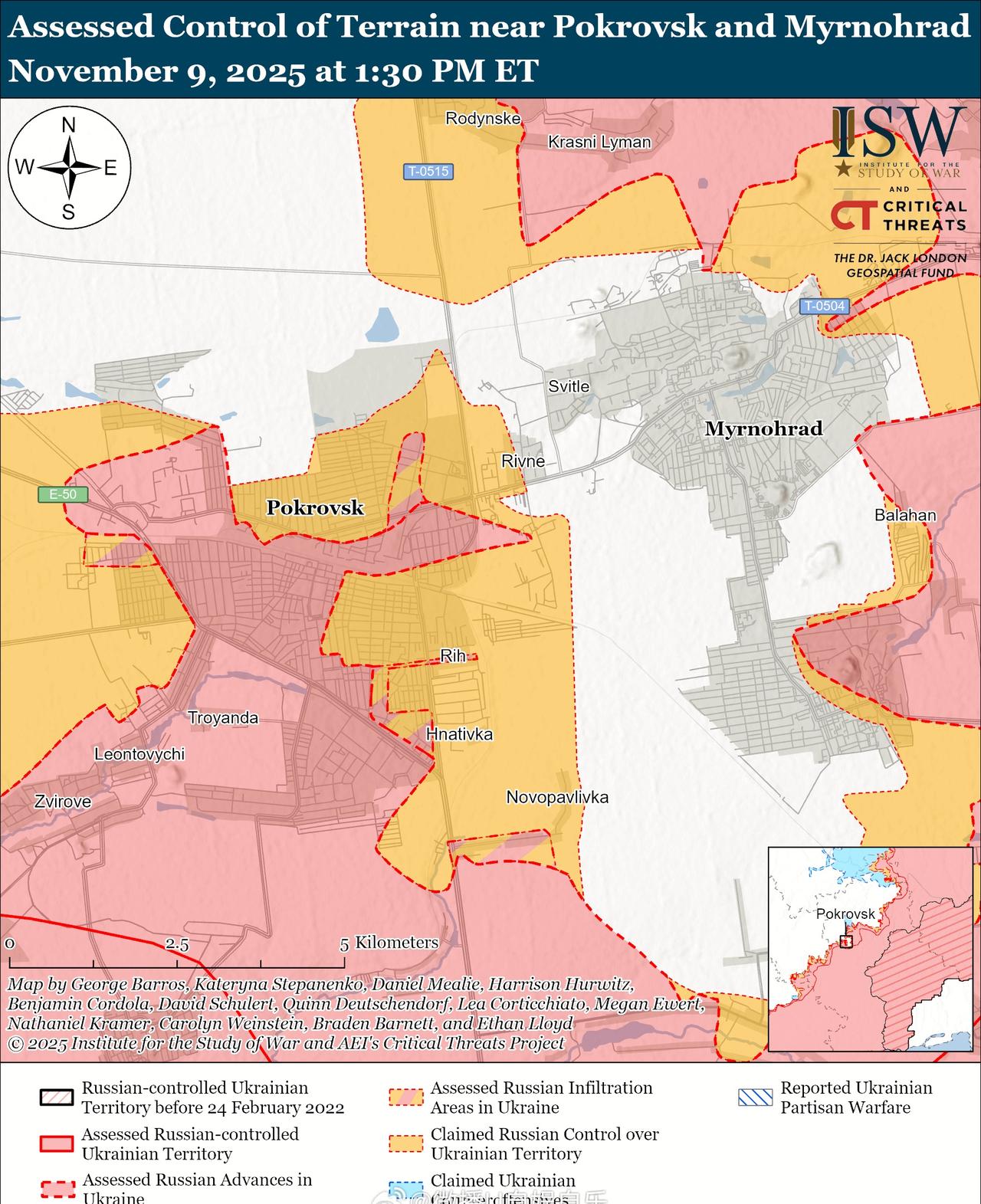ISW:俄乌两军在波克罗夫斯克方向持续开展拦截作战,俄军在该地区及周边的推进速度暂时放缓。 主要动向摘要: 俄军正成功阻断乌军向米尔诺赫拉德(波克罗夫斯克以东)的后勤补给,意图瓦解该城镇的乌军防御体系; 据报道,美国联邦政府停摆正在影响对北约盟国及乌克兰的武器出口; 欧洲官员持续通报并应对领空遭侵扰事件; 乌军在康斯坦丁诺夫卡-德鲁日基夫卡战术区取得推进;俄军则在库皮扬斯克、西韦尔斯克和扎波罗热州胡利亚伊波勒(Hulyaipole)附近有所进展。
