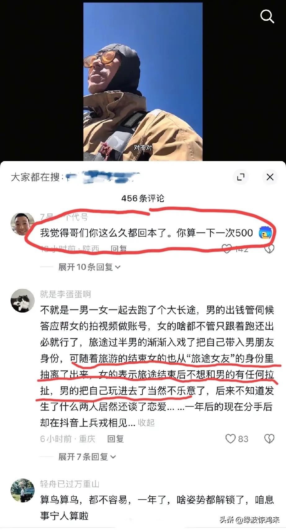 大叔哎,您就别在网上叫屈了!不就是花了您点米吗? 您都50岁了,人家小姑娘才20岁!多好的青春啊,她可陪伴了你整整一年,做你的情侣!你可是老树焕发青春啊! 骑行川藏线无人区,想想都无聊的很!整整一年,有这么一个颜值在线、活泼可爱的青春女孩陪着你,让你这段灰色的生命充满无限生机和活力,多值啊!乃可遇不可求! 分手后,姑娘迅速和你断了一切联系,多么明智的做法!年龄的代沟在这,不然她还想找个爹回去? 相逢是缘,分手也是缘!别再喊冤了,应该偷着乐!感谢上天给了你这么一段美好的回忆吧!不然,你可真贻笑大方了! 大家伙说说看,是不是这个理?[大笑]