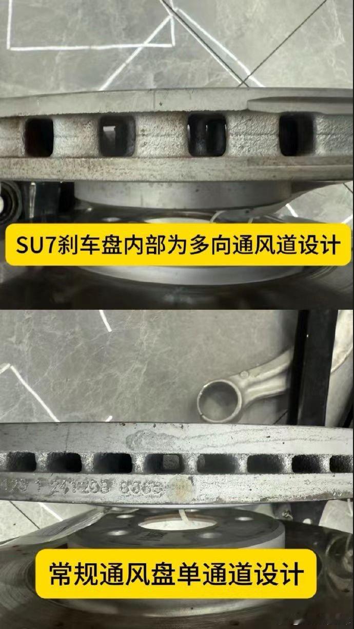 其实明眼人都能看出来小米SU7的用料,铝合金防撞梁、多向通风盘、电池气凝胶防护,