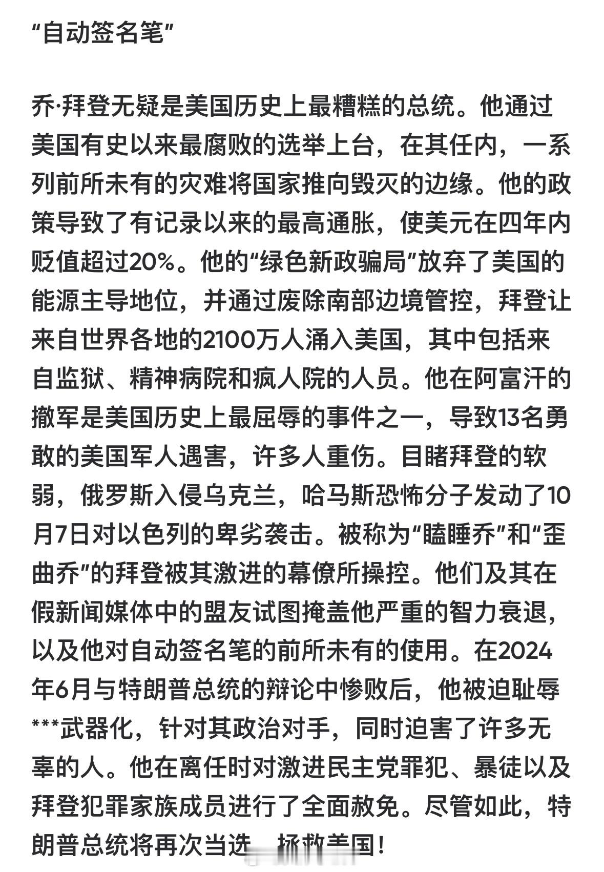 特朗普再次对拜登发表一段长篇严厉抨击特朗普称政府停摆接近结束
