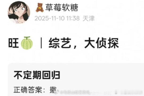 撒贝宁不定期回归大侦探谁懂啊!撒贝宁要定期回《明侦》了,我的双北 CP 终于再续前缘!网传撒贝宁不定期回归大侦探 撒贝宁或将回归大侦探