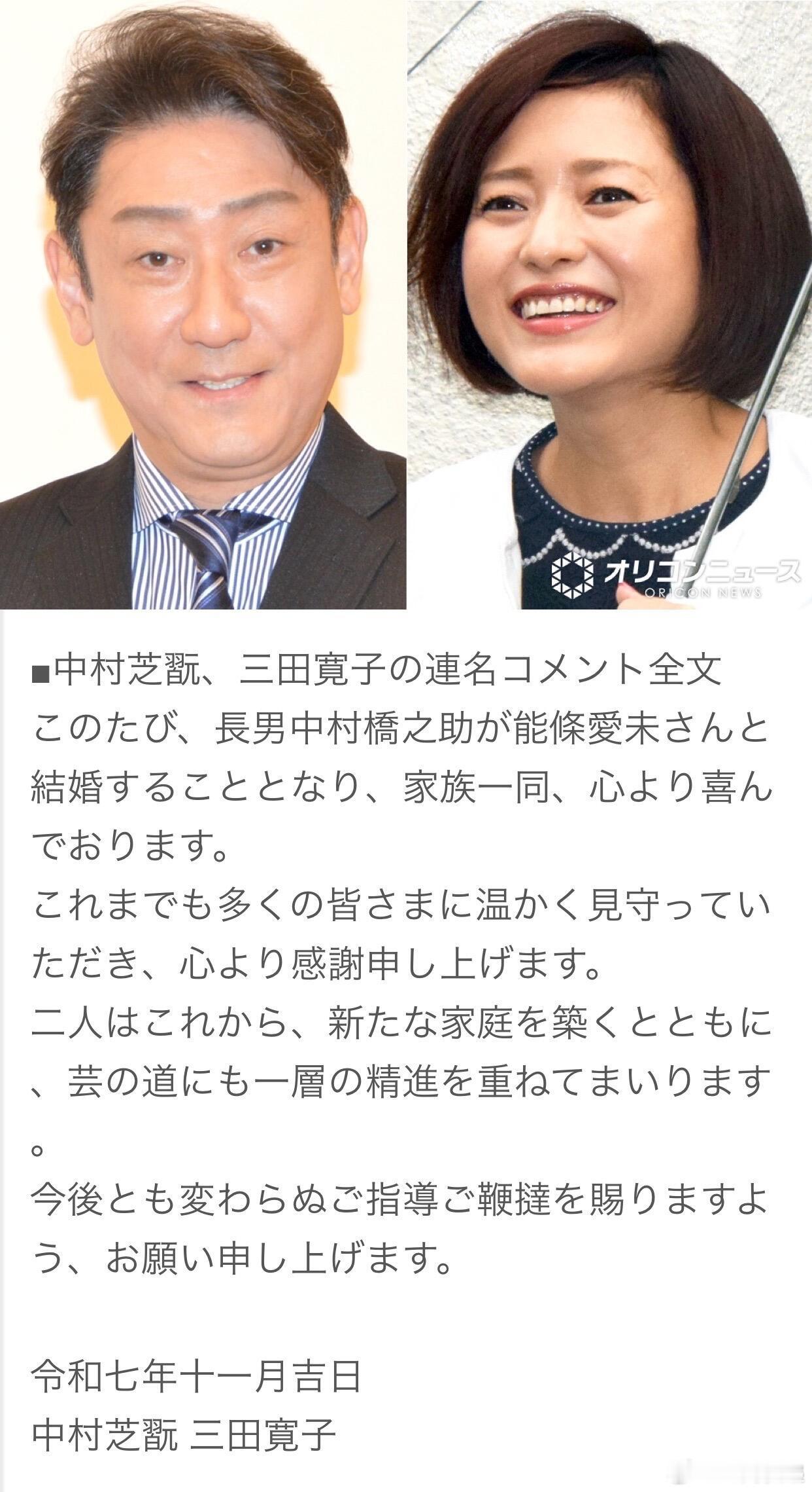 中村桥之助能条爱未订婚歌舞伎演员中村桥之助与能条爱未宣布订婚!四年前就有新闻了,