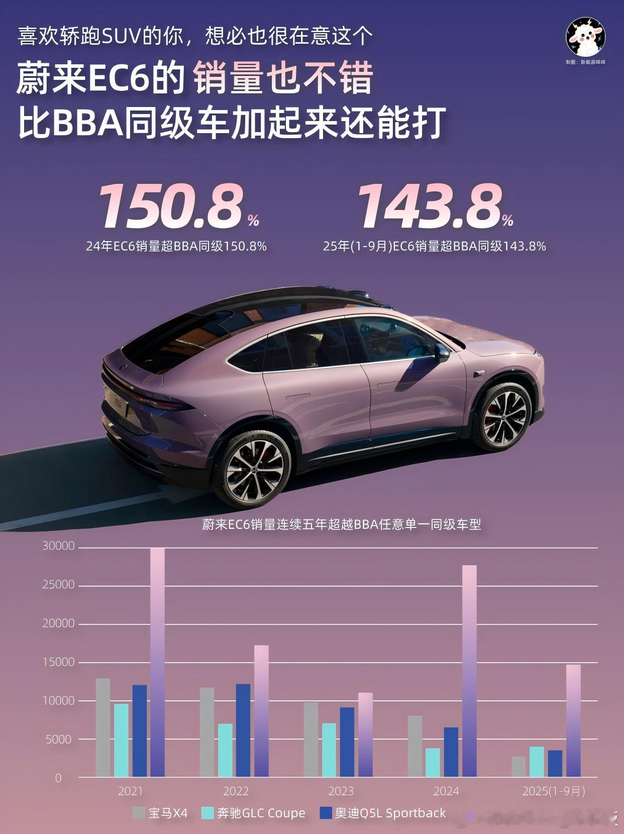 我才发现:原来低调的蔚来EC6 ,已经连续五年销量力压 BBA 同级的轿跑 SUV