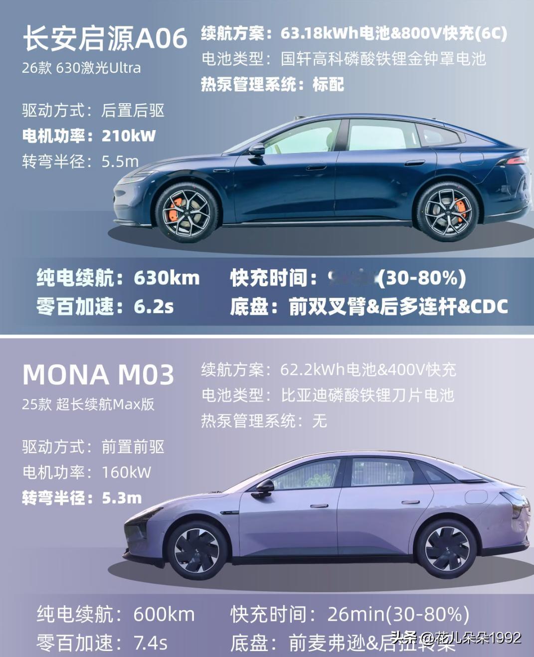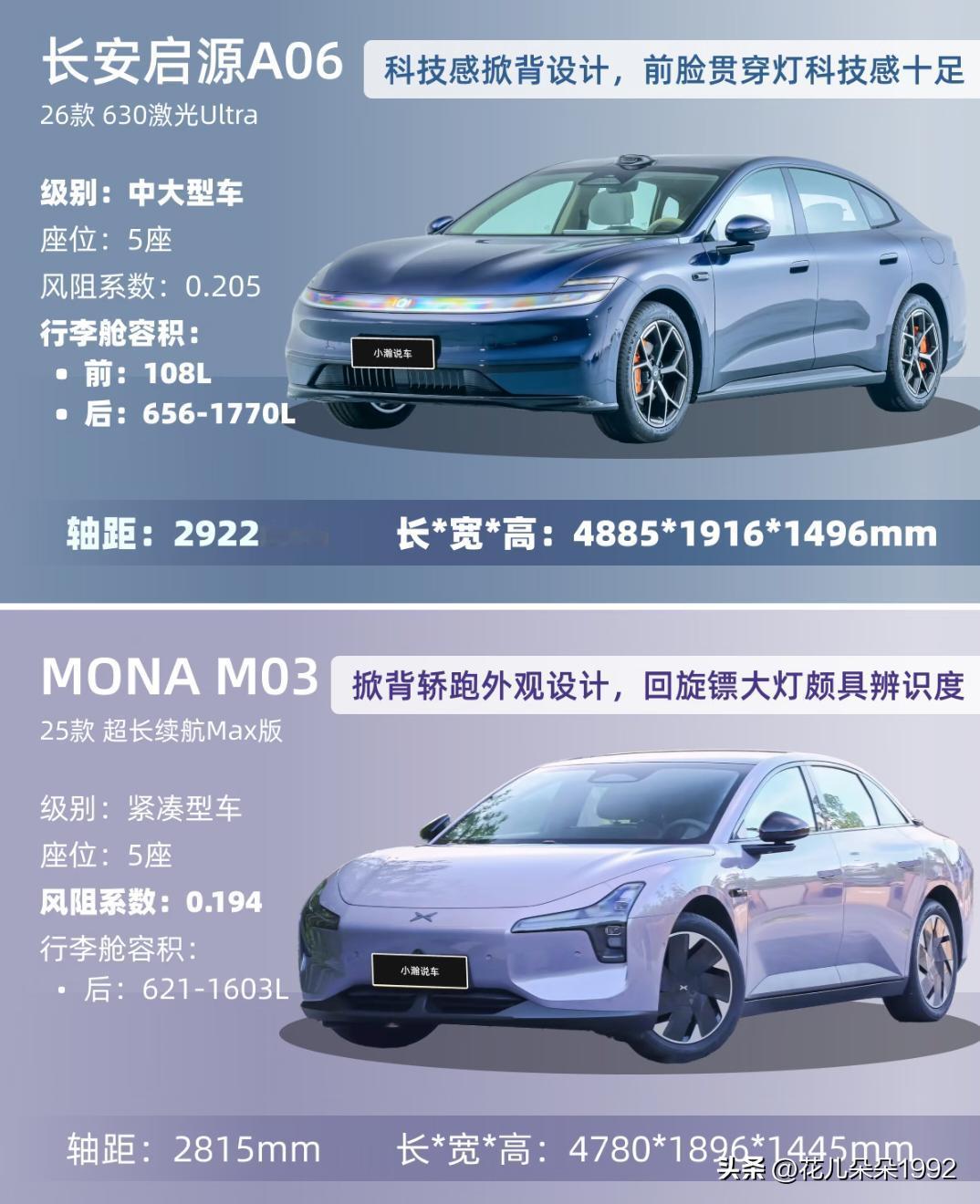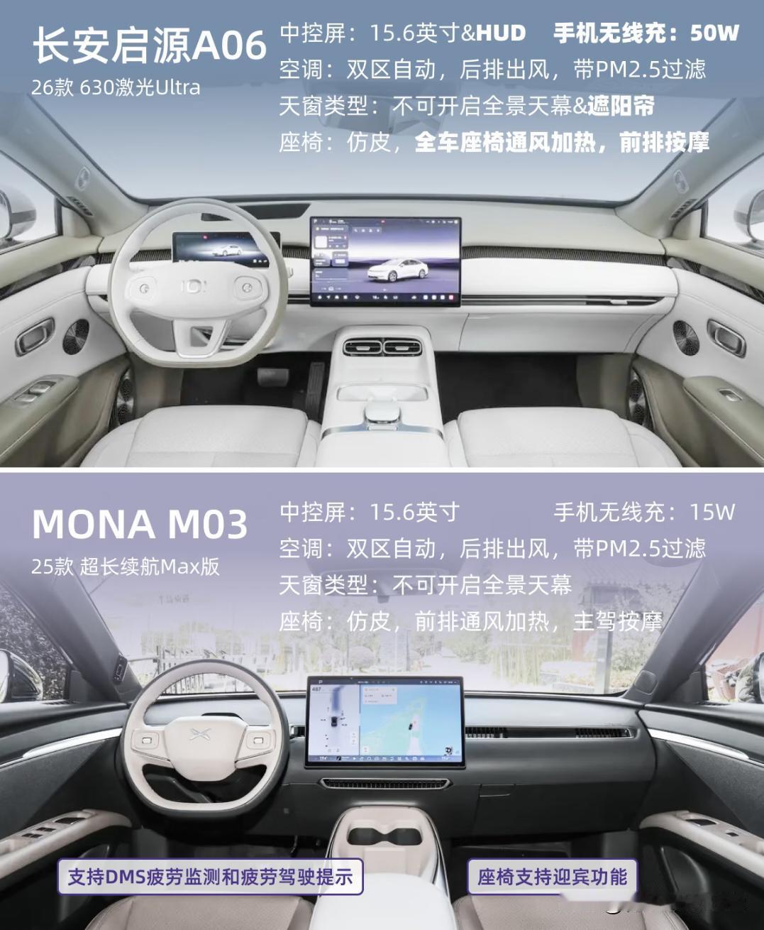 长安全能新能源家轿上市,对决小鹏爆款? 长安启源A06正式上市,提供征程和纯电两种动力形式,售价区间为10.99-14.99万元。 1.外观空间上:长安启源A06采用了全新设计语言,整体风格简约运动,前脸配备贯穿式灯带搭配两侧延伸出的两个独立灯组,品牌Logo嵌入其中颇具辨识度。得益于2.922m长轴距,A06得房率超过了90%,后排膝部空间宽敞。还配备了108升的干湿多用前备厢。 2.续航操控上:启源A06基于长安SDA全球纯电架构打造,纯电版配备800V碳化硅高压平台,CLTC纯电续航可达630km,还支持6C超充,充电10%-80%仅需12分钟。 3.内饰座舱上:简约风格双色内饰配备15.6英寸悬浮式中控屏,下方还设有外接物理按键。搭载8676芯片的天枢智能座舱,接入DeepSeek大模型,支持四音区语音、声纹识别、手机远程控制、车载KTV等功能。还支持座椅的零压电动按摩、加热、通风。 4.驾驶辅助上:长安启源A06高配车型搭载天枢智能驾驶辅助激光版,支持高速/城市领航辅助驾驶、全场景智能泊车。无论高速还是城市道路,用车安全性和便利性大幅提升。 那么相比于目前这个价位热销的小鹏MONA M03,你会选择这款长安启源A06吗?
