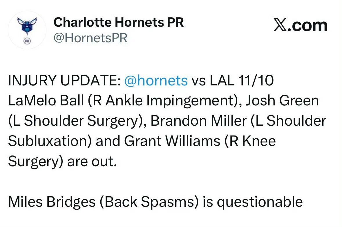 三球(右踝)、约什-格林(左肩手术术后)、布兰登-米勒(左肩半脱位)、格威(右膝手术术后):缺席比赛。