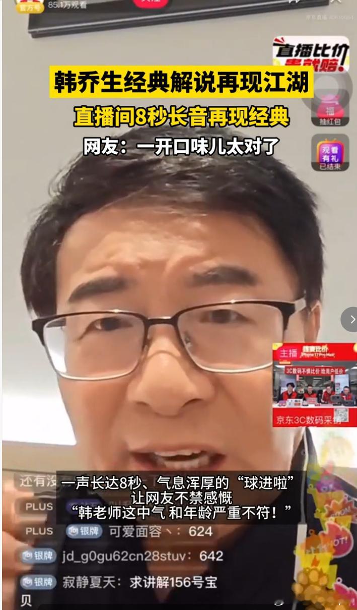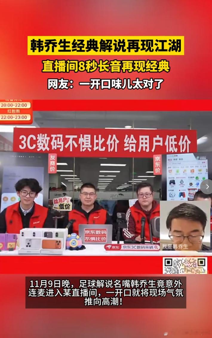 当年看央5,谁没听过韩乔生的解说?解说激情,段子频出,号称体育解说界的“段子手”,各种经典语录。这次,韩乔生老师空降京东直播间连麦直播比赛,这和当年看电视机没区别!从电视机到电脑到手机,变的是收看设备,不变的是声音,不变的是喜欢体育的那颗心,直播看韩乔生连麦就和直接看球没区别嘛!上京东直播间,享3C数码大惊喜,看球怎能少了它!