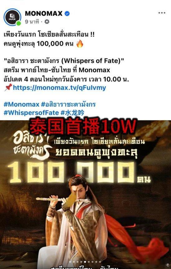 《水龙吟》海外数据太争气!油管首播64万+播放,越南FPT Play霸榜榜首,泰国首日10万+观看,东方美学征服全球