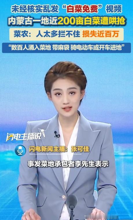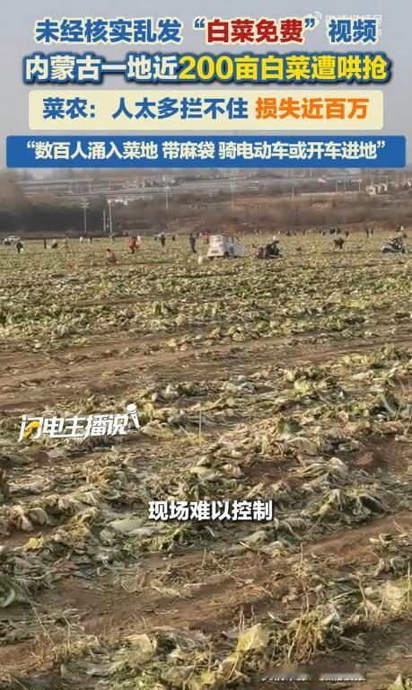 一则谣言,菜农损失近100万![听歌] 初冬的赤峰郊外,老李站在田埂上看着满地狼藉。 一辆皮卡车刚刚碾过菜畦,扬长而去。 这一切都源于三天前某平台上一段没有经过任何核实的短视频,画面里是成片的白菜地,配文却写着“老乡家白菜滞销免费送”。 最初只是零星的邻里过来询问,老李随口答应了他们摘几棵自家吃的请求。 没想到从7号中午开始,这条视频突然在多个账号上被标注“赤峰百亩白菜免费送”的定位疯狂转发。 到了下午,通往菜地的土路上挤满了200多辆汽车,其中甚至出现了集装箱卡车。 在现场,有人开着电动三轮车来回搬运,有人扛着麻袋在田间奔跑。 最令人惊讶的是一位戴草帽的大爷,前后往返三次扛走了三大袋白菜,每袋都装得满满当当。 老李后来回忆说,当时他试图解释这是个误会,但声音完全被喧闹的人群淹没。 这片200亩的白菜地是老李全家今年的全部希望。 按照他的计算,每亩地仅土地租金就要800元,化肥农药投入1200元,再加上人工管理费500元,总投入超过50万元。 这些原本可以卖到1.2元每斤的优质冬储白菜,现在要么被抢走,要么在混乱中被踩烂在地里。 更让老李揪心的是,原本已经谈好的几家超市采购订单全部被取消,对方听说菜地出现哄抢情况,直接终止了年度供货合同。 当地派出所介入调查后发现,最早发布视频的账号注册时间仅仅只有三天。 这条视频在发布后的24小时内被转发了1.2万次,最终酿成了这场风波。 令人欣慰的是,事件曝光后陆续有37人主动联系老李进行赔偿。 其中一位开火锅店的老板在了解到真实情况后,专门驱车来到菜地,按照市场价支付了8000元,认领了他家员工采摘的1300斤白菜。 这位老板说,他最初也是在社交平台上看到的消息,到了现场才发现情况不对。 老李现在每天都会在菜地里进行直播,向网友们展示真实的种植过程和田间管理。 他说,比起经济损失,他更担心的是农民这个群体的信誉受损。 对于这场谣言,网友们有话要说。 “我们这儿种地容易吗?辛辛苦苦大半年,一条谣言全完了。那些开着卡车来拉的,心里没点数吗?天上能掉白菜?” “这事必须追究到底!造谣的涉嫌寻衅滋事,哄抢的超过5000元就能立案。好在有人主动赔偿,说明法律意识在提高。” “我是本地人,确实有邻里互助的传统,但都是小范围的。这种大规模哄抢太离谱了,把别人的善良当软弱。” “看着真心疼!现在买菜都不容易,这么好的白菜被糟蹋。建议以后看到这种“免费”的消息,先问问是不是真的。” “上周刚去过赤峰,当地农民真的很朴实。那个火锅店老板做得对,发现问题主动弥补,这才是正能量。” “既对造谣者表示愤慨,也对盲目跟风的行为感到无奈。” “那位火锅店老板,他的赔偿不仅弥补了损失,更修复了人与人之间的信任。” “当我们轻点转发按钮时,是否考虑过信息的真实性?是否意识到这个简单的动作可能会给他人带来巨大的伤害?” 在信息爆炸的时代,我们每个人都需要成为信息的过滤器,而不是传声筒。 如果您在群里看到“免费采摘”的消息,会怎么做?是随手转发还是先核实真假?您觉得平台在防范这类谣言上应该承担哪些责任?欢迎在评论区说出您的看法! 信息源:闪电新闻、潇湘晨报