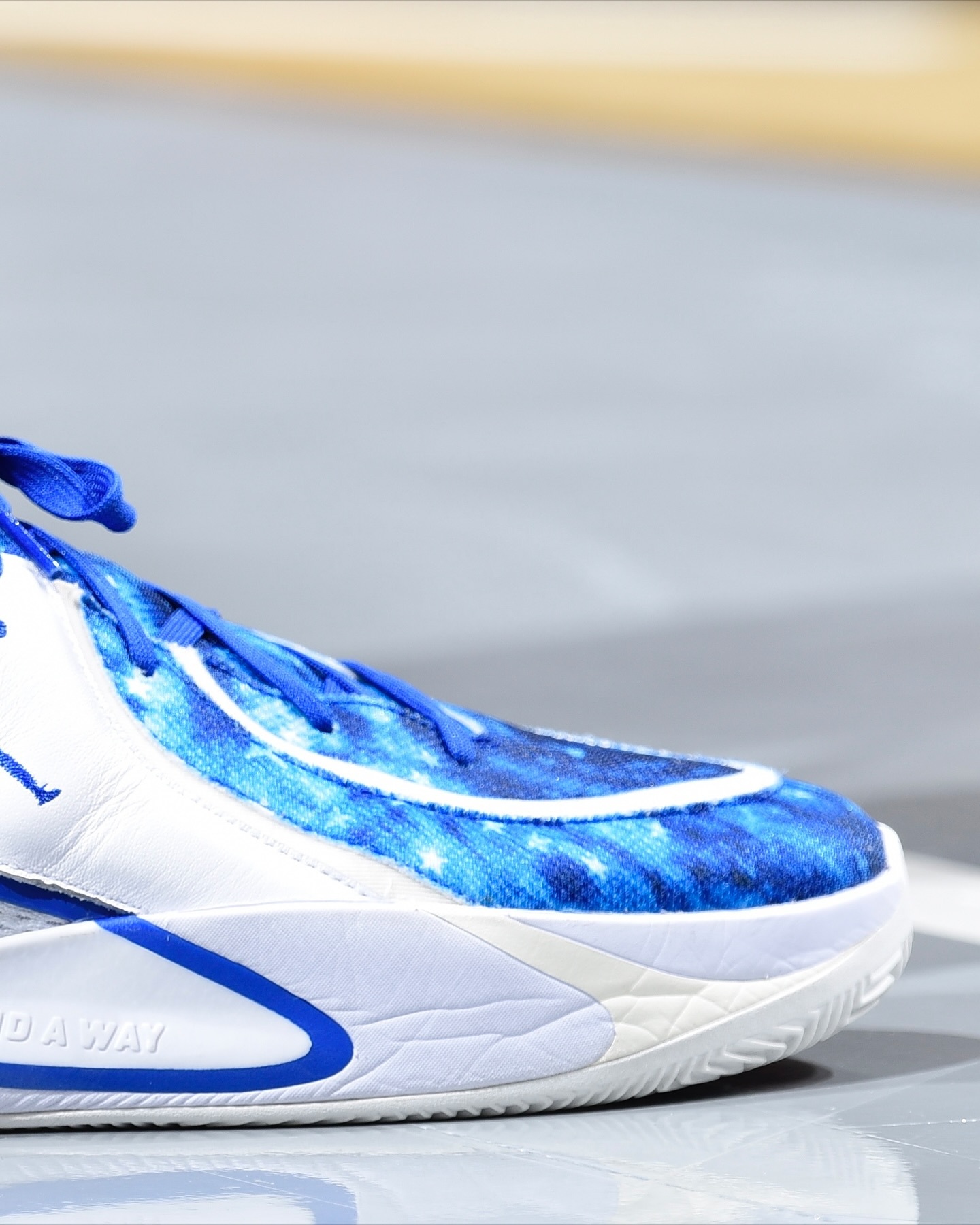 76人新秀VJ穿的哈登9“Ice Metallic” 配色。