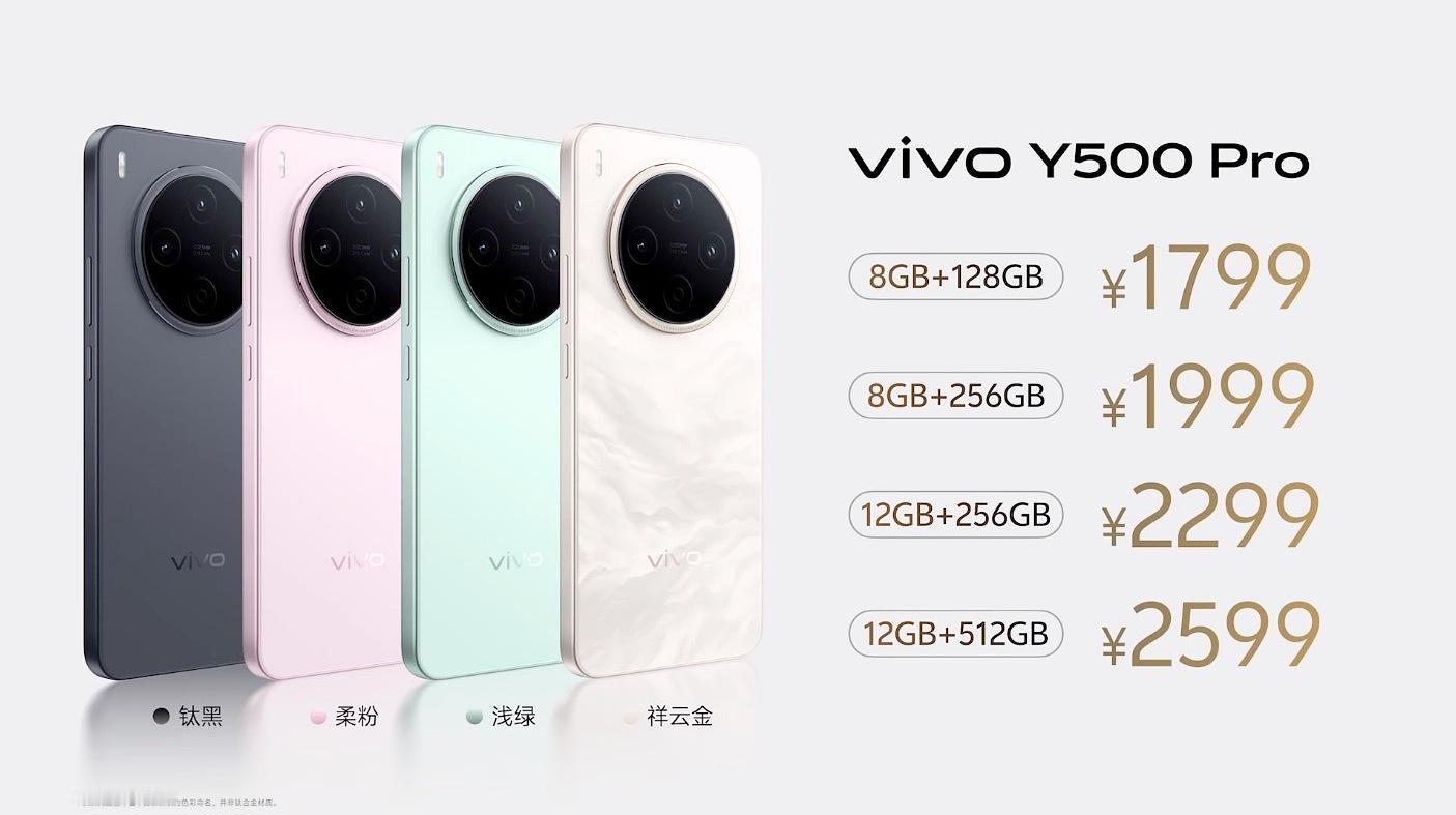 vivo Y500 Pro一图看完,好看高级的颜值,两亿像素主摄,7000mAh大电池,满级防水,流畅稳定的系统等。确实是主流用户需要的好产品,最终定价也很有诚意,1799元起售,不错不错~国民小旗舰产品力和诚意都挺足的。
