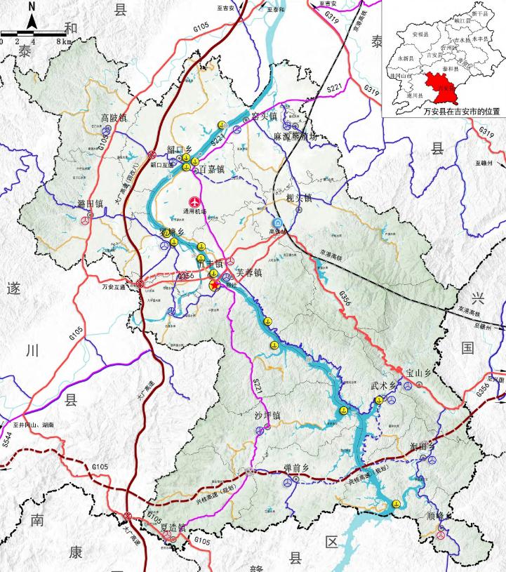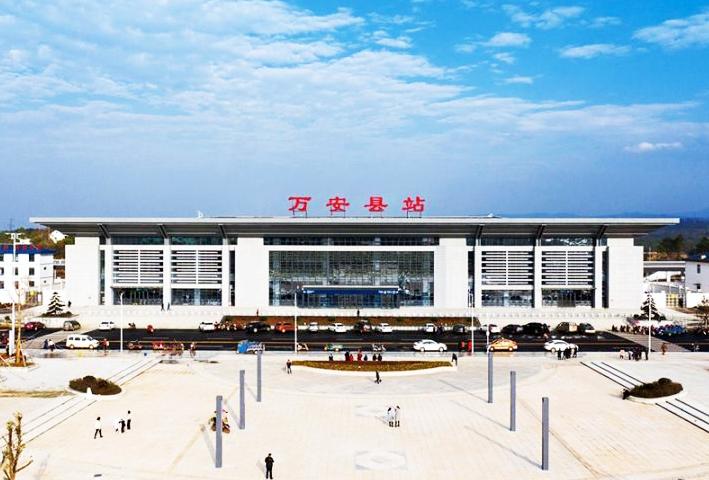 万安县站卫星地图 万安县站位于万安县枧头镇,为京港高铁上的一个中间车站(站场规模为2台4线),该车站结束了万安地区不通火车的历史,车站的设计秉持“零换乘、无缝对接”的理念,融入井冈山五指峰、庐陵藻井等地方文化元素等。 截至目前,万安县站在11小时内,可抵达国内30个城市,可达53个车站,即西安(G3156/7)、上海(G2783/6)、武汉(G2710)、深圳(G2705等车次)等地。