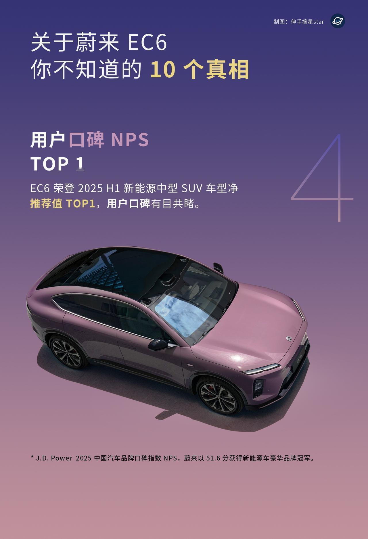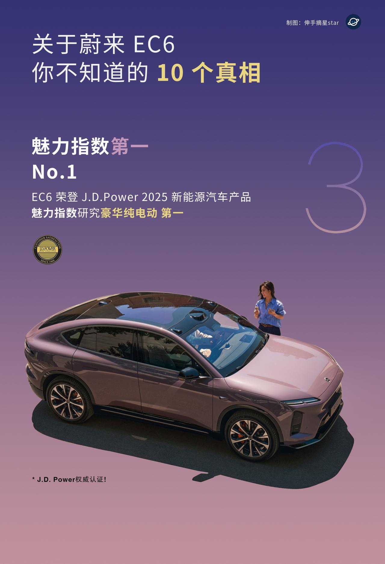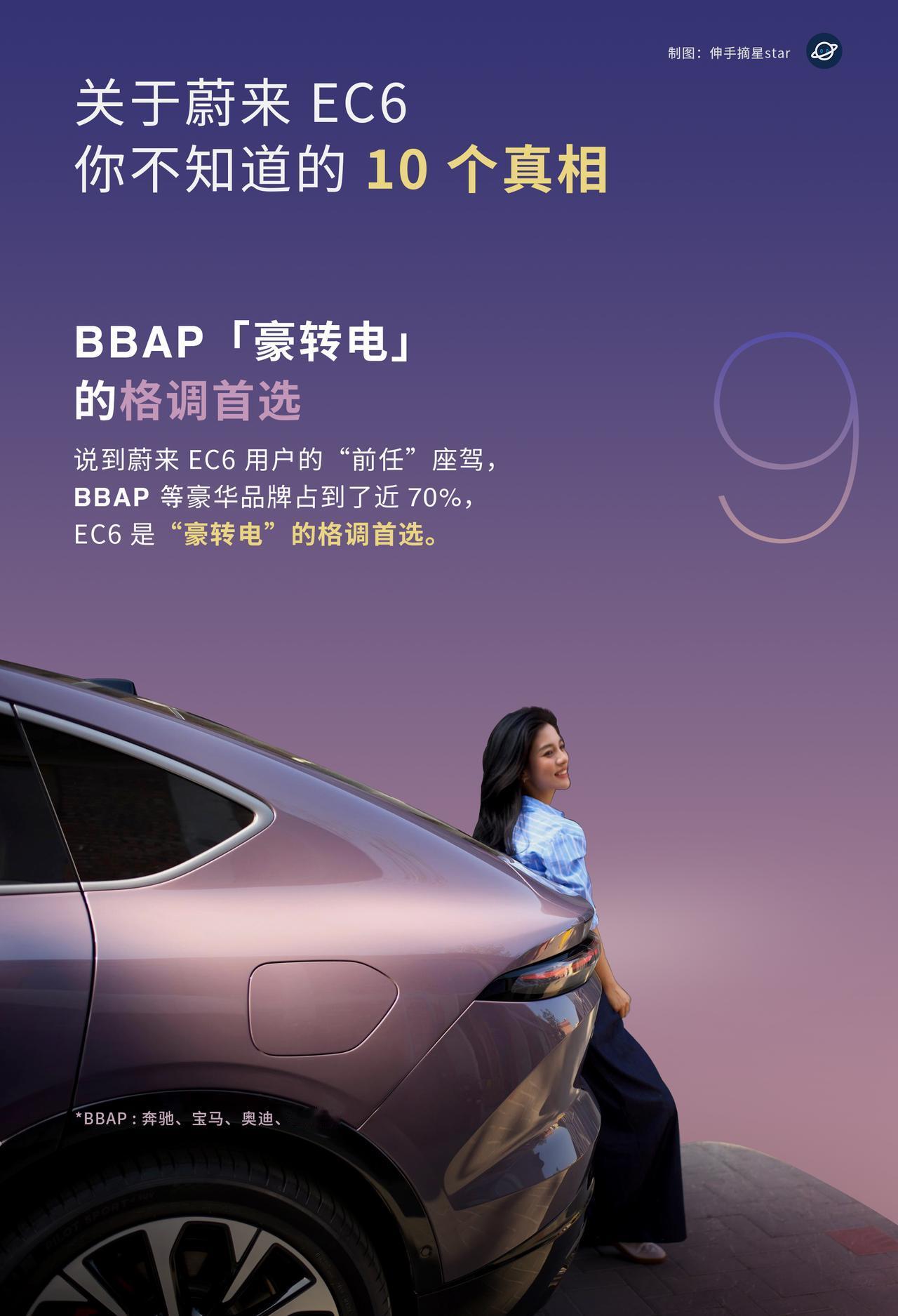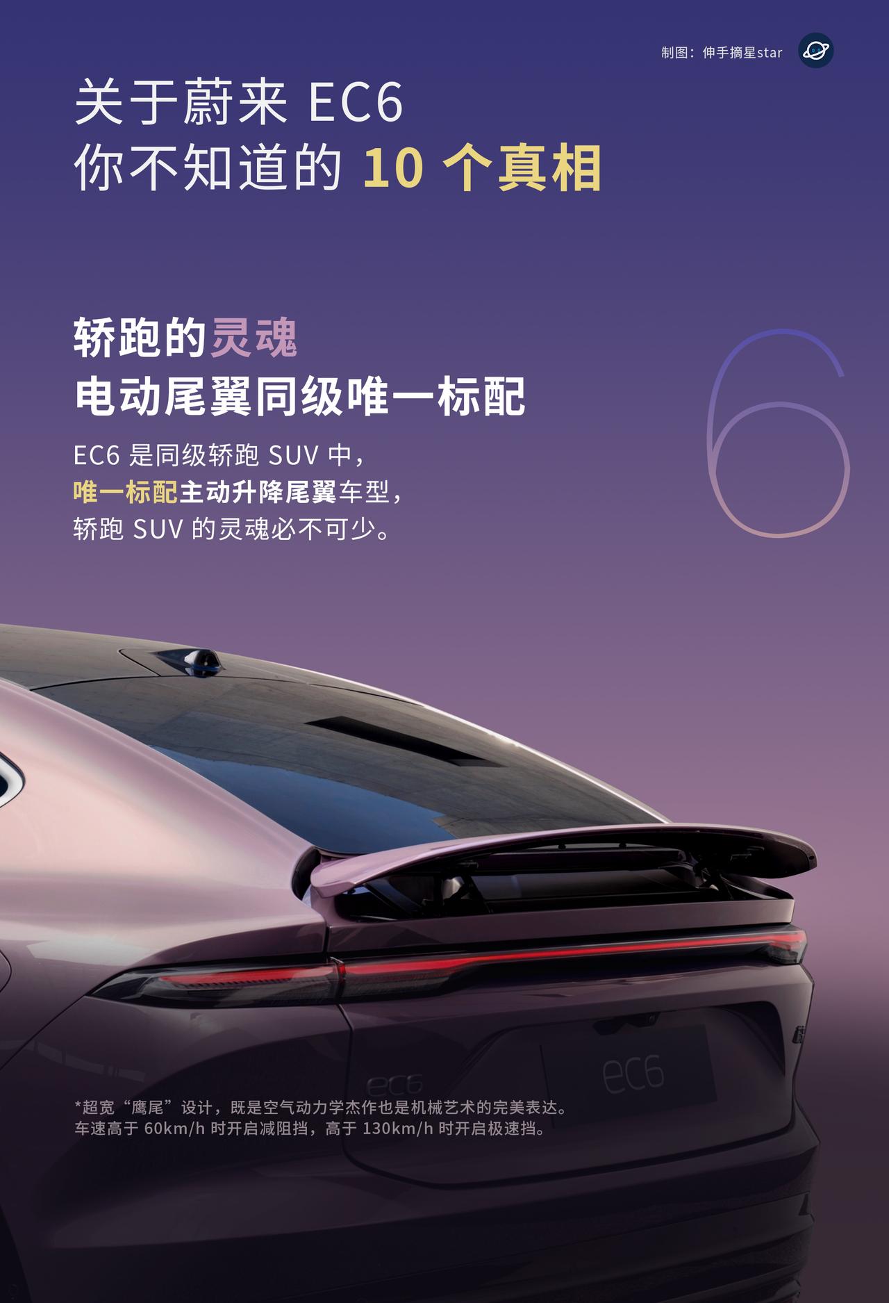EC6,你知道的是颜值高, 轿跑造型惹人爱。 EC6,你知道的是蔚来的小众车型, EC6的车主漂亮小姐姐N多。 你是不是没有想到, 蔚来把小众成为了主流。 蔚来EC6的销量超过了同级BBA的总和。 根据聪明的“车友”@蔚来的杨波 分享的 文字版本: 关于EC6,你不知道的10个真相, 我把它具象化了。 当然,还会有更多的真相大白, 欢迎评论区补充。 蔚来 颜值高的车 蔚来ec6新能源汽车