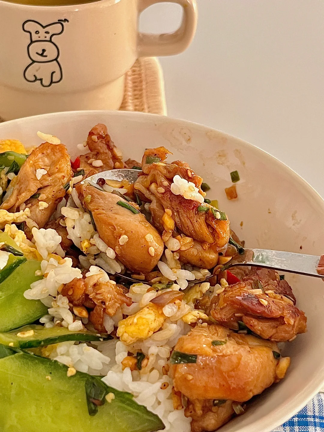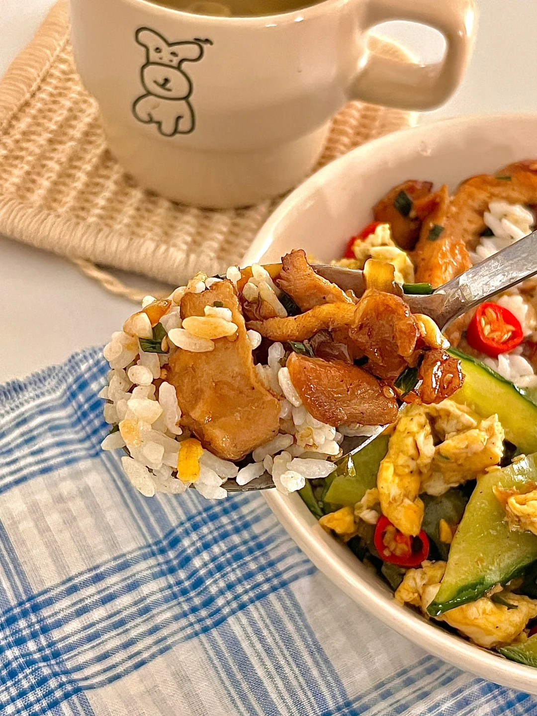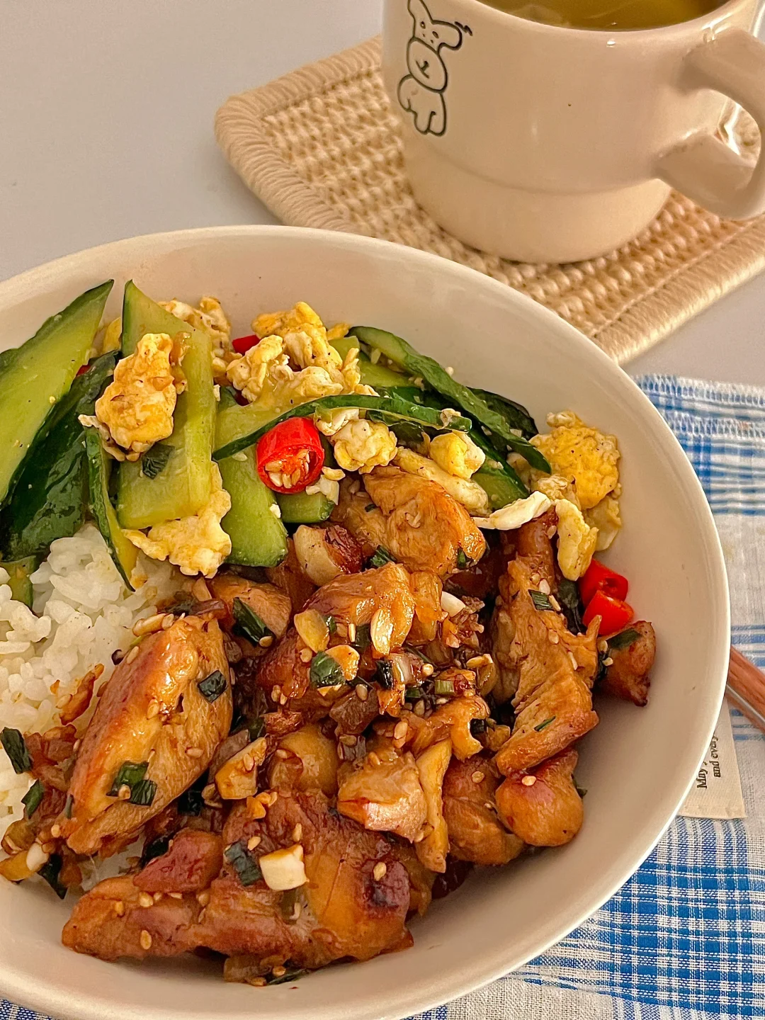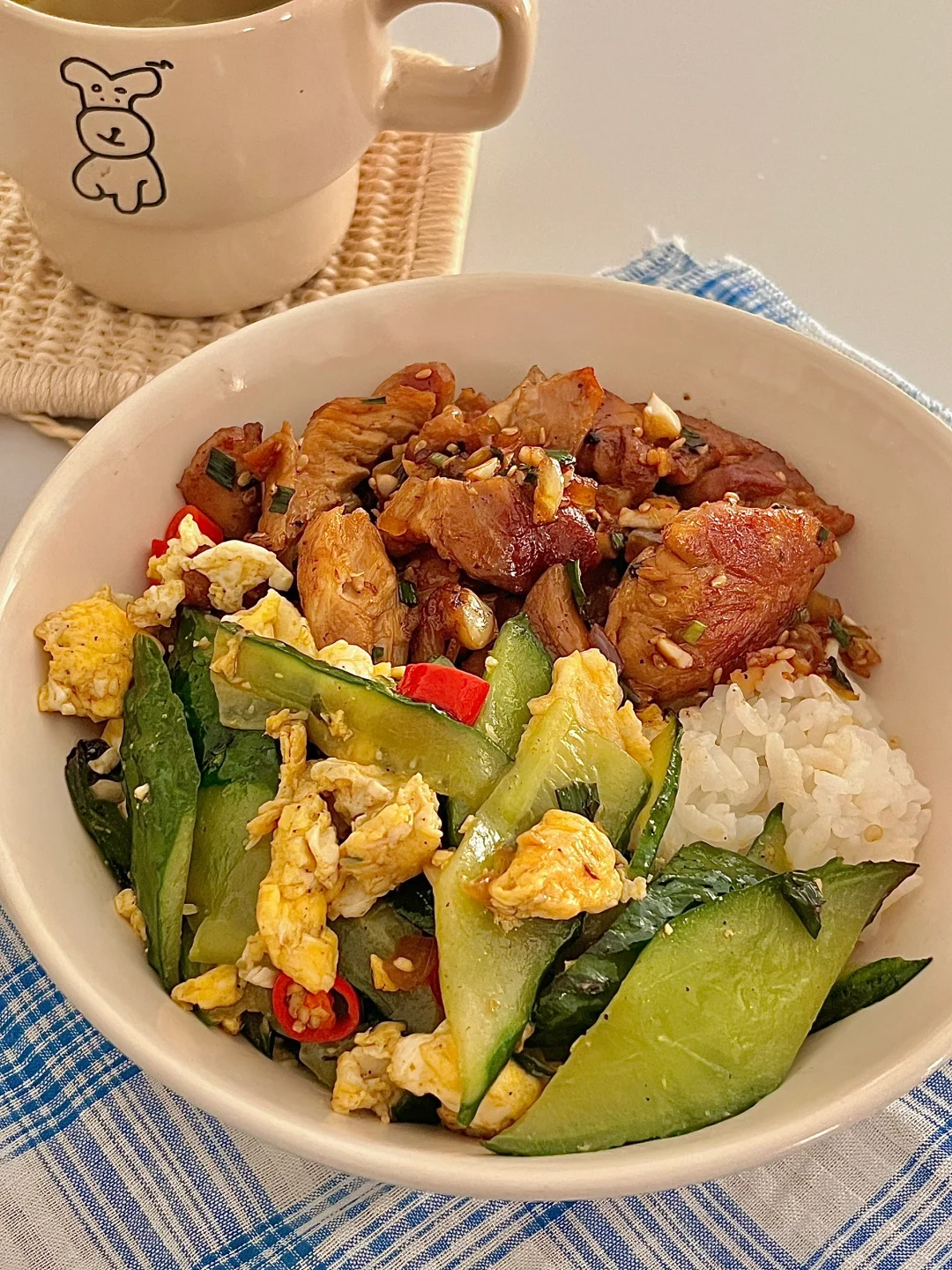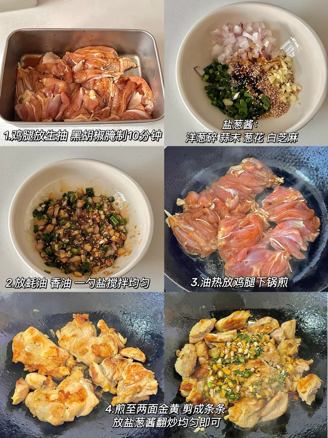 🥄今日份一人食: 黄瓜炒鸡蛋 盐葱酱鸡腿肉 ~ 详细做法看图上~ 香香的小葱做盐葱酱和鸡肉配一起好下饭! 搭配黄瓜炒鸡蛋 简单又好吃的组合, 鸡肉一定要把里面的油脂煎出来,焦香焦香的很下饭,近期很爱吃的一个菜! .