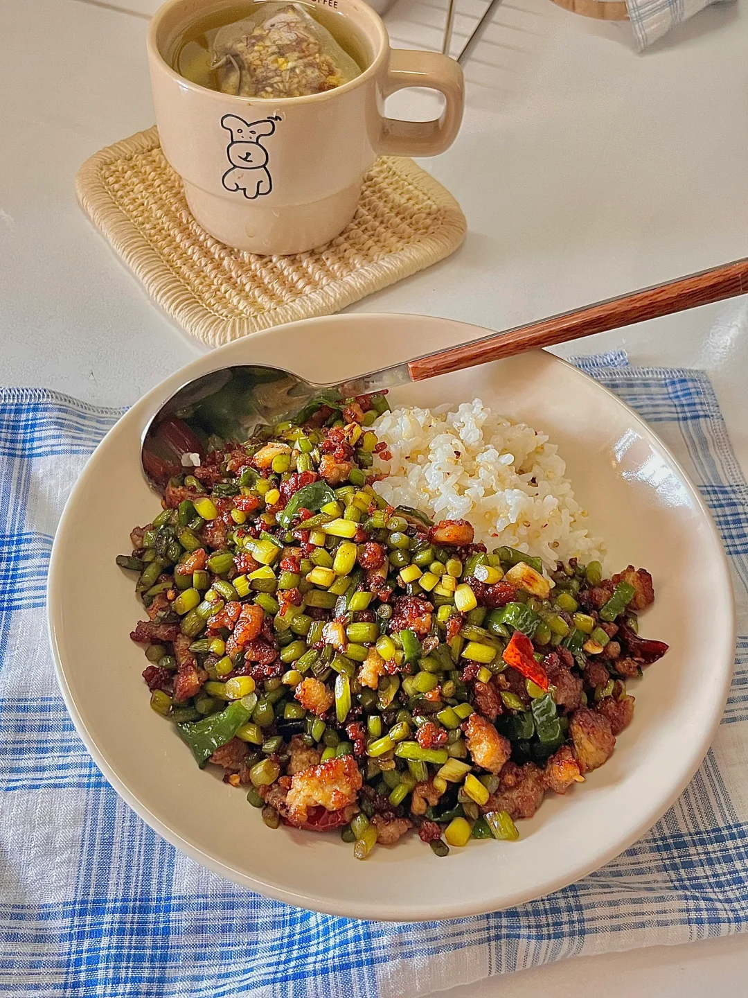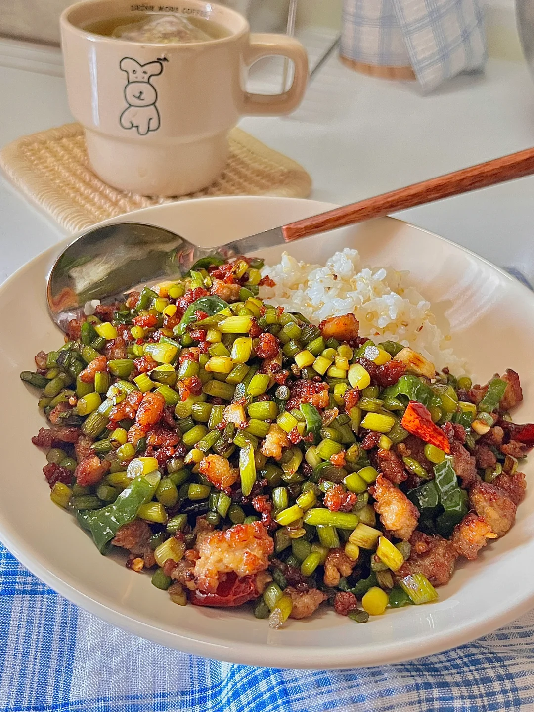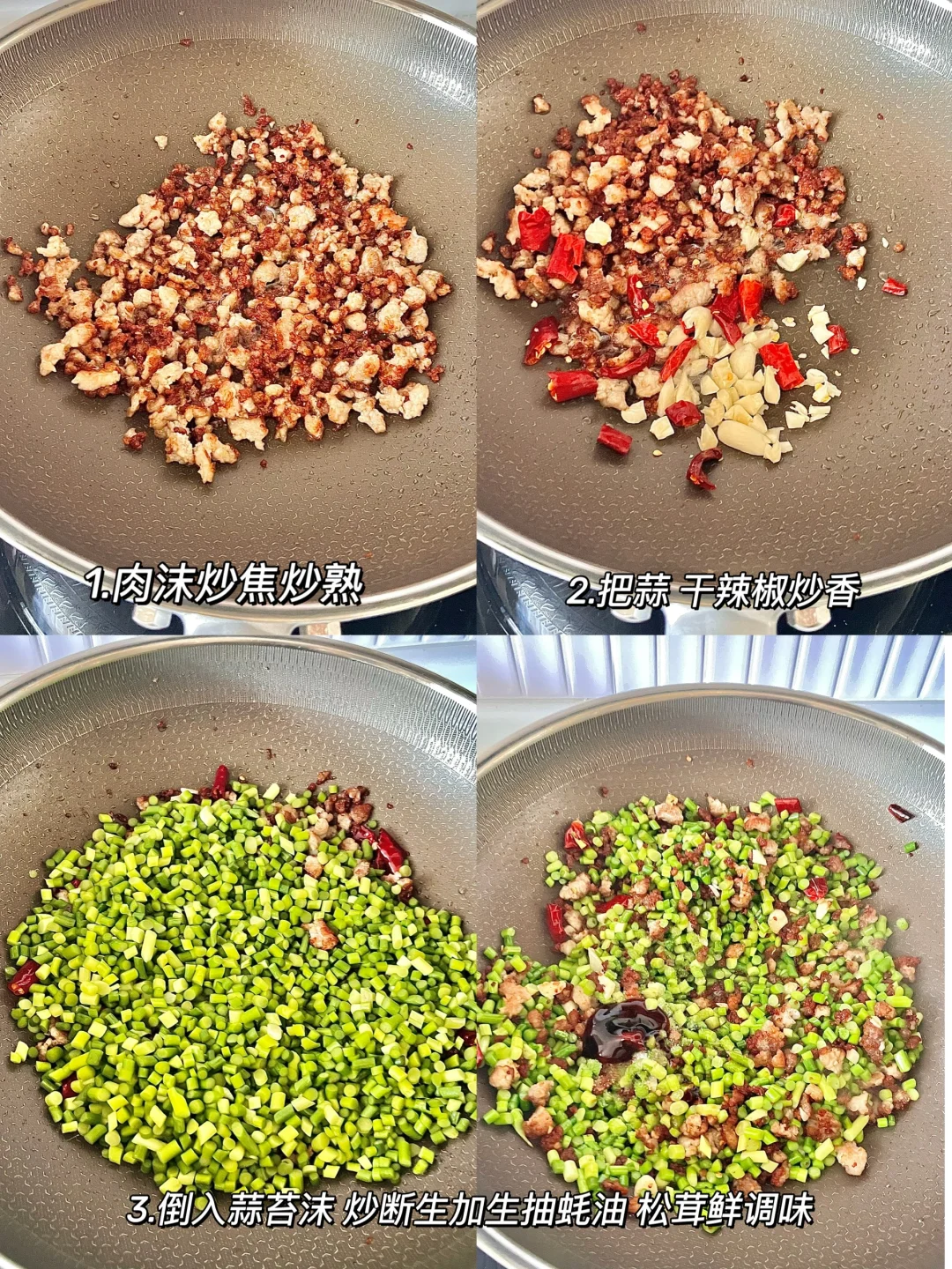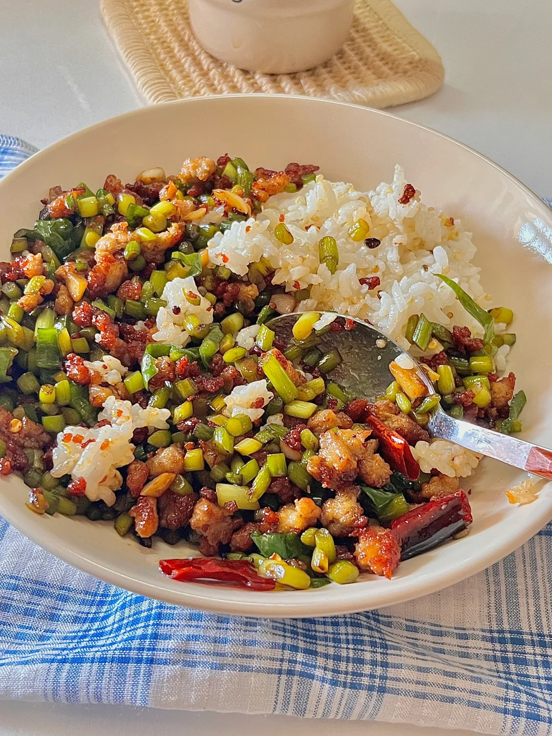 我太爱吃拌饭了,今天这个蒜苔炒肉沫,菜肉饭满满一口下去,超满足的,简单食材也很美味👍🏻生活化减脂也太快乐啦! 食材🥬:蒜苔 肉沫 干辣椒 蒜片 做法在图上⬆️简单快手 快去试试吧~