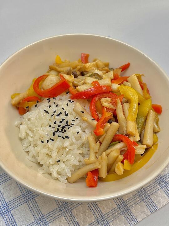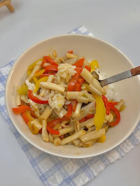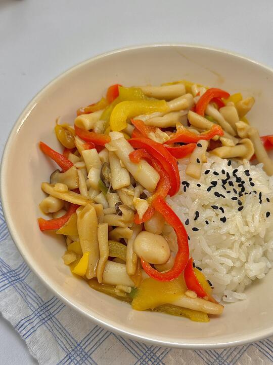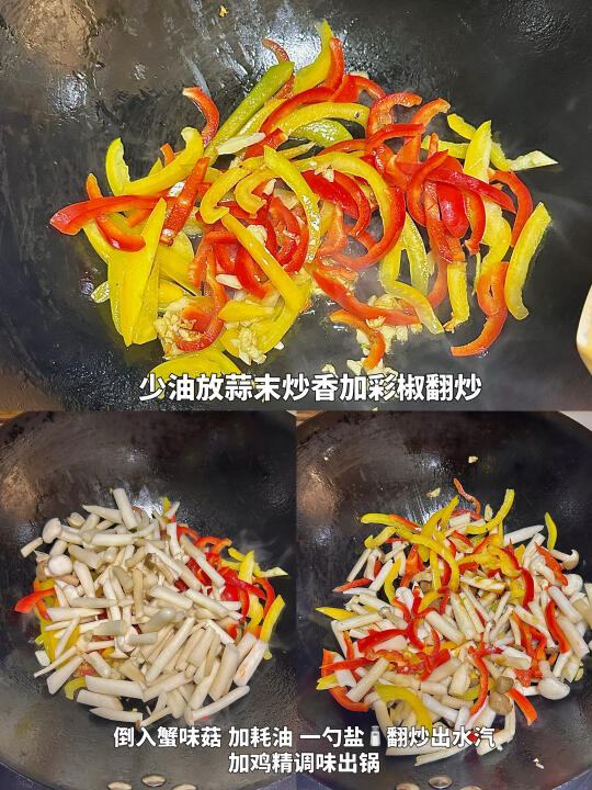 年味从这一口开始 又是一道快手低卡下饭菜,彩椒蘑菇小炒,鲜嫩多汁巨下饭,低脂低卡 好吃不胖 ! 🥬食材准备:彩椒,菌菇,蒜末