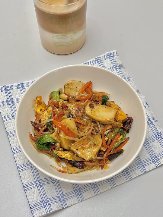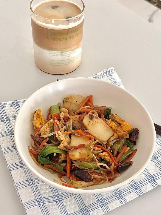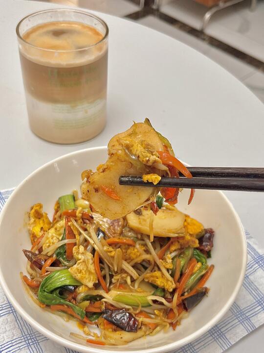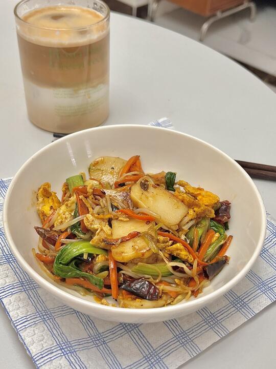 做菜我是认真的 我真的爱惨了辣辣的炒年糕,多放辣椒和蔬菜🥬食材丰富又美味,配上一杯自制拿铁,特饱腹!糯叽叽的太好吃😋啦!减脂期适量吃就好。 食材:年糕 青菜 绿豆芽 鸡蛋 胡萝卜丝 干辣椒 葱蒜🧄 做法再图上⬆️ 快去试试吧~