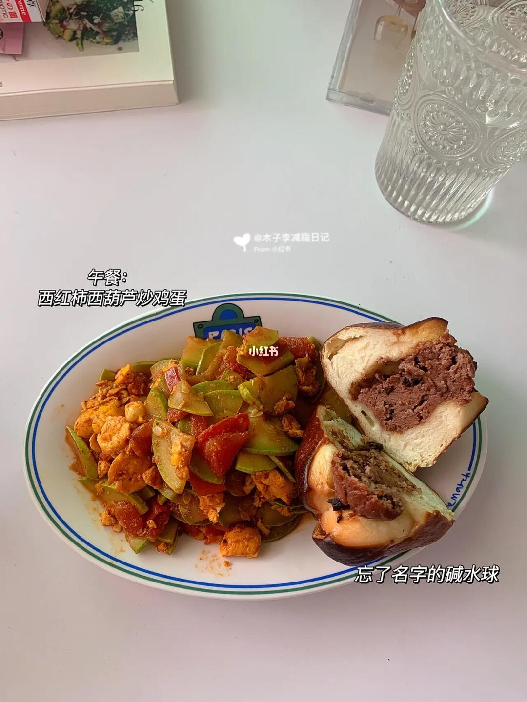 🥣午餐:西红柿西葫芦炒鸡蛋|碱水球