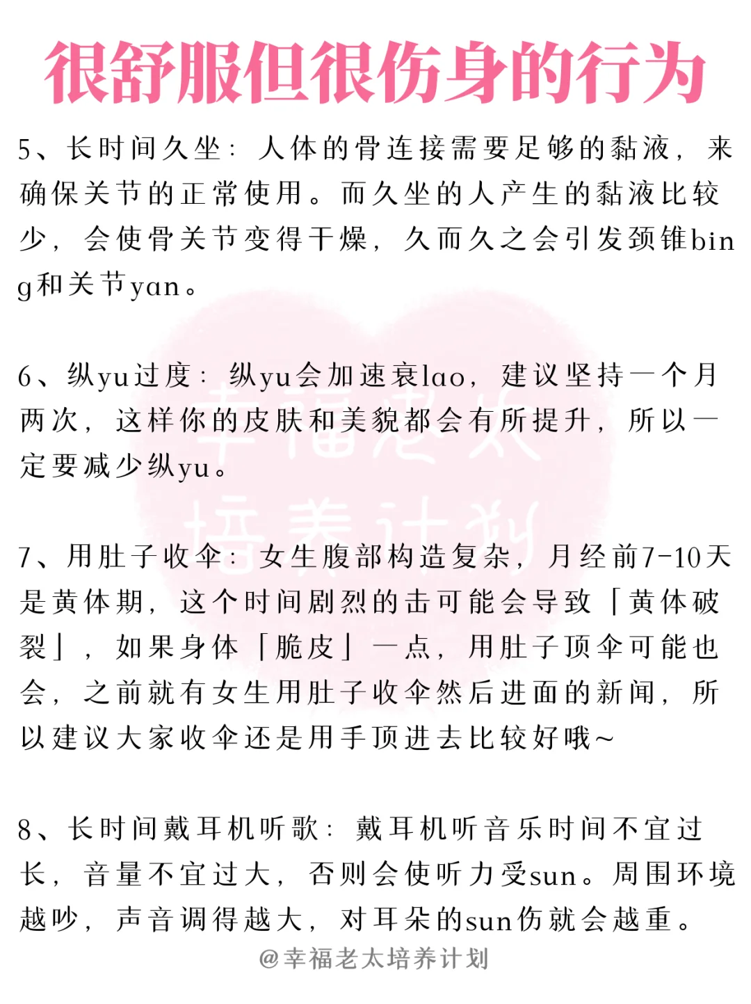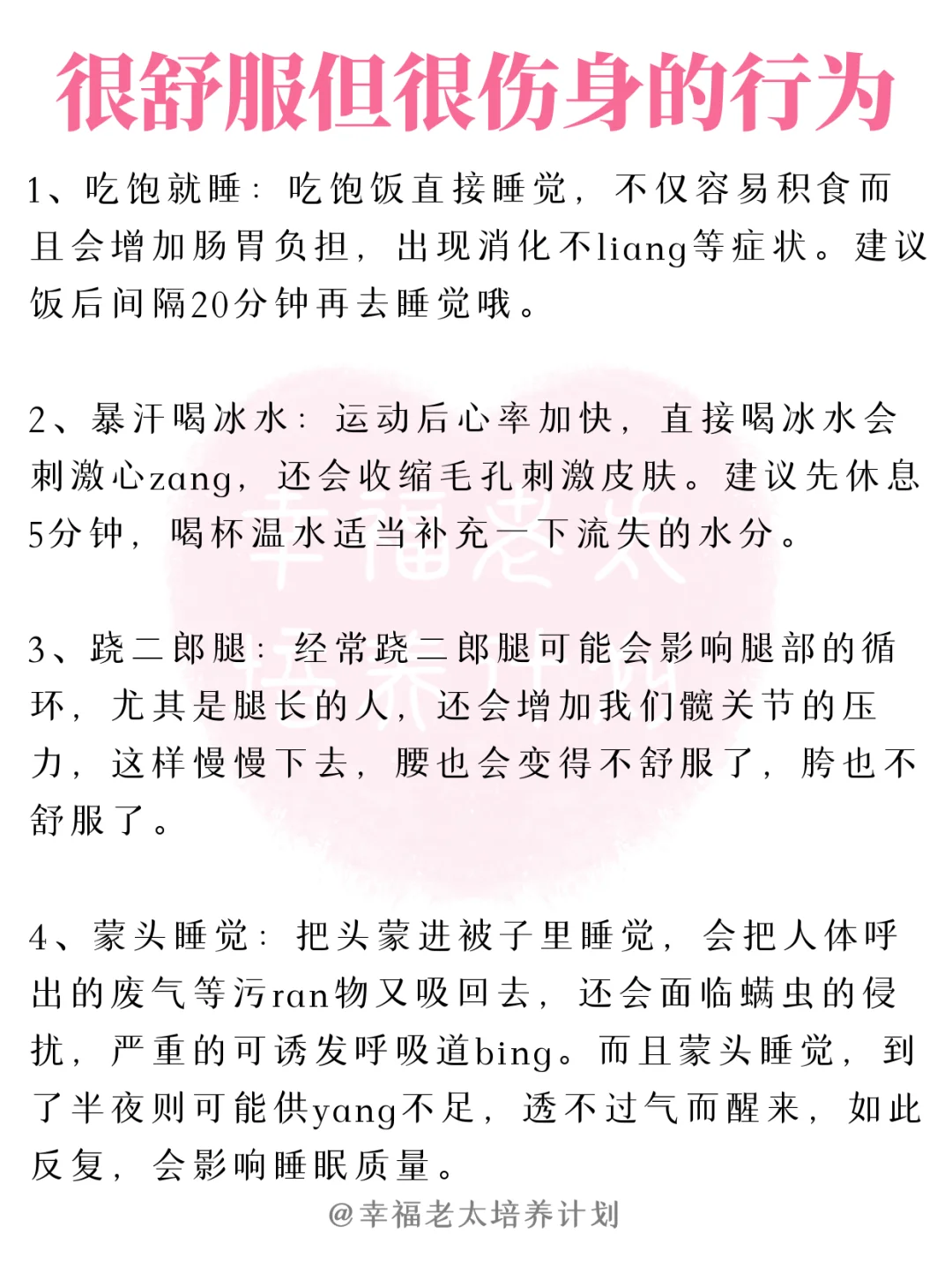 平时生活中总有很多容易忽略的小事,虽然很舒服很方便,但是其实很伤害我们的身体,所以为了我们的健康,下面这些事情,再舒服也要忍住!