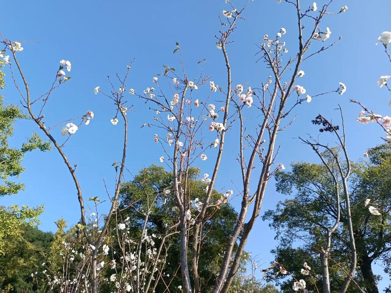 都说腊梅傲雪庆腊八,樱花盛开迎新春。可现在的杭州才是初冬却也有樱花绽放,不由的让人感觉春天就在眼前。 杭州西湖孤山公园几株樱花在蓝蓝的天空下显得那么的如梦如幻,宛如一群从仙境而来的小精灵,带着不食人间烟火的空灵与美丽。