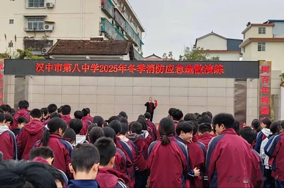 11月10日,汉中市第八中学南校区组织全校师生开展消防疏散演练暨灭火器使用