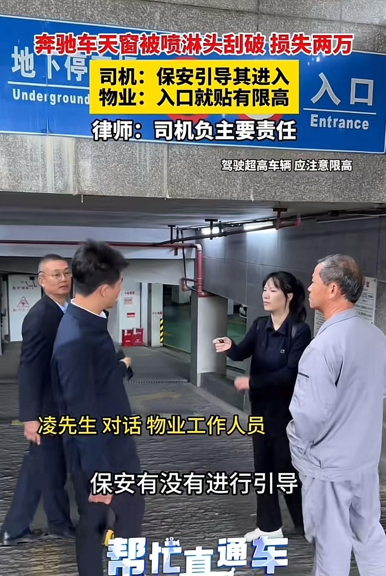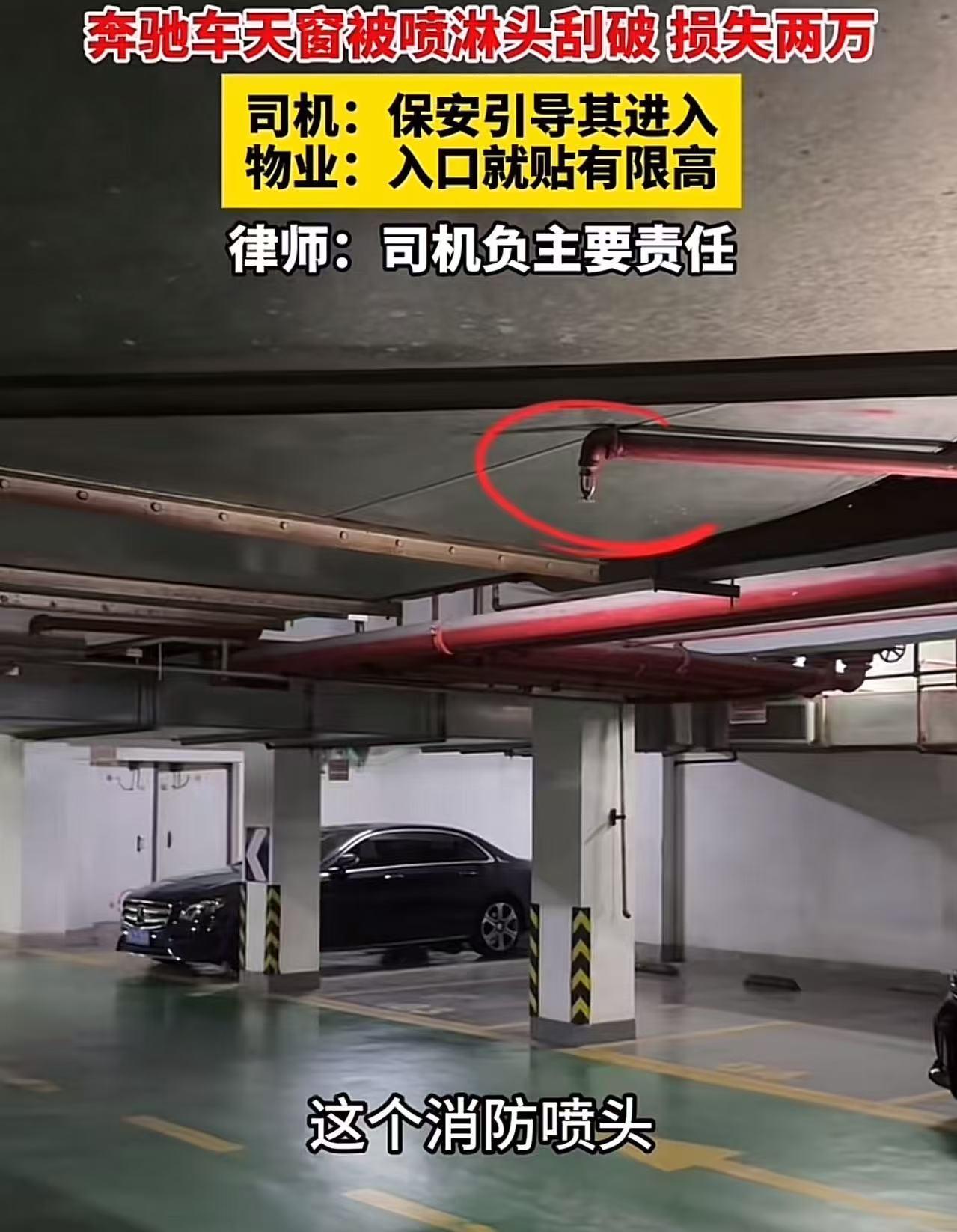 无理找记者?男子开奔驰车进入地下停车场,结果车子太高,天窗被喷淋头刮坏,损失两万多!男子认为物业保安没有尽到提醒责任,要求他们承担赔偿。而物业负责人说:“地下室入口这么大限高的标志,你看不到吗?这跟我们有什么关系呢?” 凌先生开着一辆商务奔驰车,兴高采烈地去某场所消费。到了地方,他打算把车停在该场所的地下室停车场。 当他把车缓缓开进地下室时,突然,“砰”的一声巨响从车顶传来。 凌先生心里“咯噔”一下,赶忙下车查看,这一看可把他心疼坏了——车子的天窗被顶上的喷淋头刮得稀碎。 后来,他把车送去维修,花了2万多块钱。凌先生越想越觉得憋屈,他觉得这损失必须得由该场所的物业来承担。 于是,他带着调解员气势汹汹地找上门去,要求物业赔偿。 物业负责人看到凌先生带着调解员来了,也不慌不忙,指着地下室入口处那个大大的限高2M的标志,理直气壮地说:“你自己没长眼睛啊,没看到这限高标志吗?你把车刮了,跟我们有什么关系呢?” 凌先生却不认同物业的说法,他振振有词地说:“我来你们这儿消费,保安引导我进入地下停车场的。而且那抬杠是手动的,保安当时也没提醒我停车场限高啊。要是他当时看到我车辆过高,就应该劝导我呀!” 物业负责人听了,无奈地摇摇头,反驳道:“你车子超高了,你自己本身就得看清楚啊。那么大一个标志贴在那儿,你是看不见还是咋的?” 双方吵得不可开交,那么,从法律上该怎么看这件事情呢? 律师表示,凌先生开的这辆车明显比普通车辆高,他应该负有更高的注意义务,主要责任肯定得自己承担。 不过呢,因为这个停车场有保安看守,还是手工抬杠,所以保安其实也应该有一定的提示义务。但这个提示义务相对比较轻微,毕竟车子有多高,车主自己才是最清楚的。 此事引发热议,有网友说,高速入口都有限高啊,工作人员也没有拦截告知,自己开车自己心里要清楚。换个概念,路上有限速牌,难道也要告知吗? 也有网友说,本身自己车高!入停车场自己要注意的!没让你赔消防水管就不错了!现在的人都是怎么了? 还有网友说,不要说保安的事,保安是负责进出引导的,因为人家无法鉴定车的高度,人家也不知道车的高度,如果人家不让你进,司机又该找调解员说不让进了,责任就在司机! 我认为,作为车主,在进入停车场之前本就应该仔细观察、确认车辆是否符合限高要求,这是最基本的常识和责任。不能因为自己没注意,就把责任一股脑地推给物业和保安。 如果每个人都像凌先生这样,遇到问题不从自身找原因,而是想方设法把责任转嫁给他人,那社会秩序还不乱套了? 我们在生活中,都应该多一些担当,少一些推诿,遇到问题先反思自己,这样才能避免类似的闹剧再次上演。 不过,这也给我们提了个醒,物业工作人员,都应该增强责任意识,多一份细心和提醒,这样就能减少很多不必要的麻烦和损失!