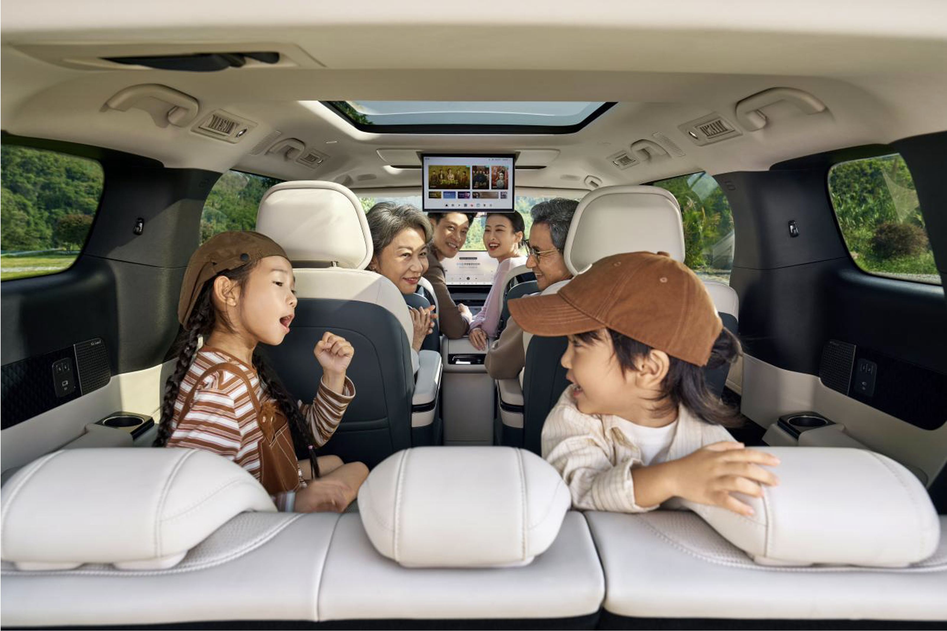 这车的颜值就很高,7种车色,每一种都超有格调。5米多的车长,3米多的轴距,大空间容纳全家,第二排座椅按摩、通风、加热一应俱全,第三排还能一键隐藏,后备箱能装下全家的行李。
