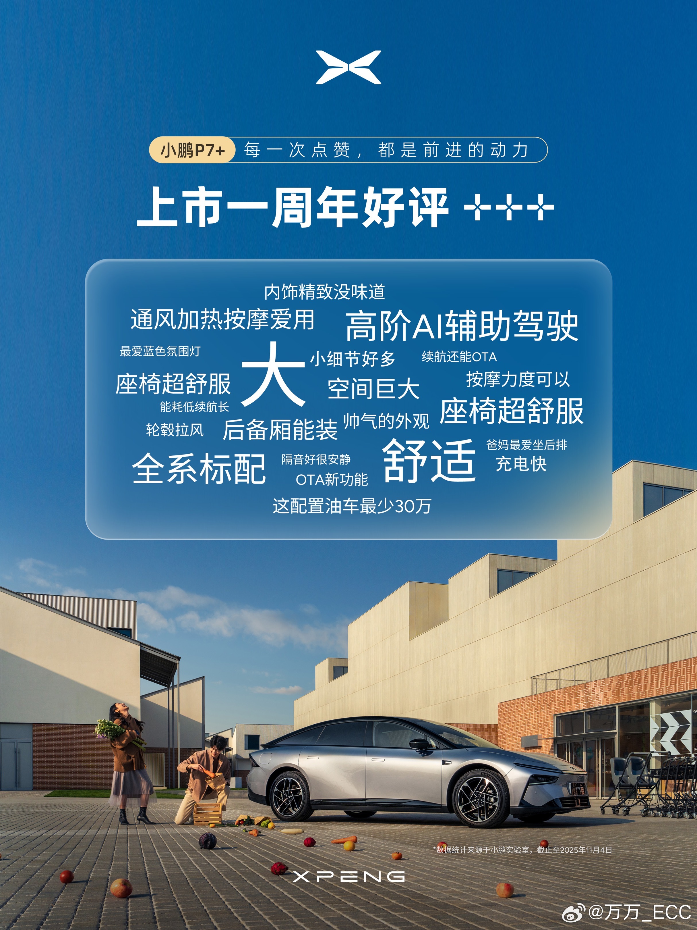 即使到25年底,20万不到的价格,给到725km续航、800V 5C快充、全场景智驾、轿车的操控、三米轴距的家用空间,P7+依然是最好的选择。