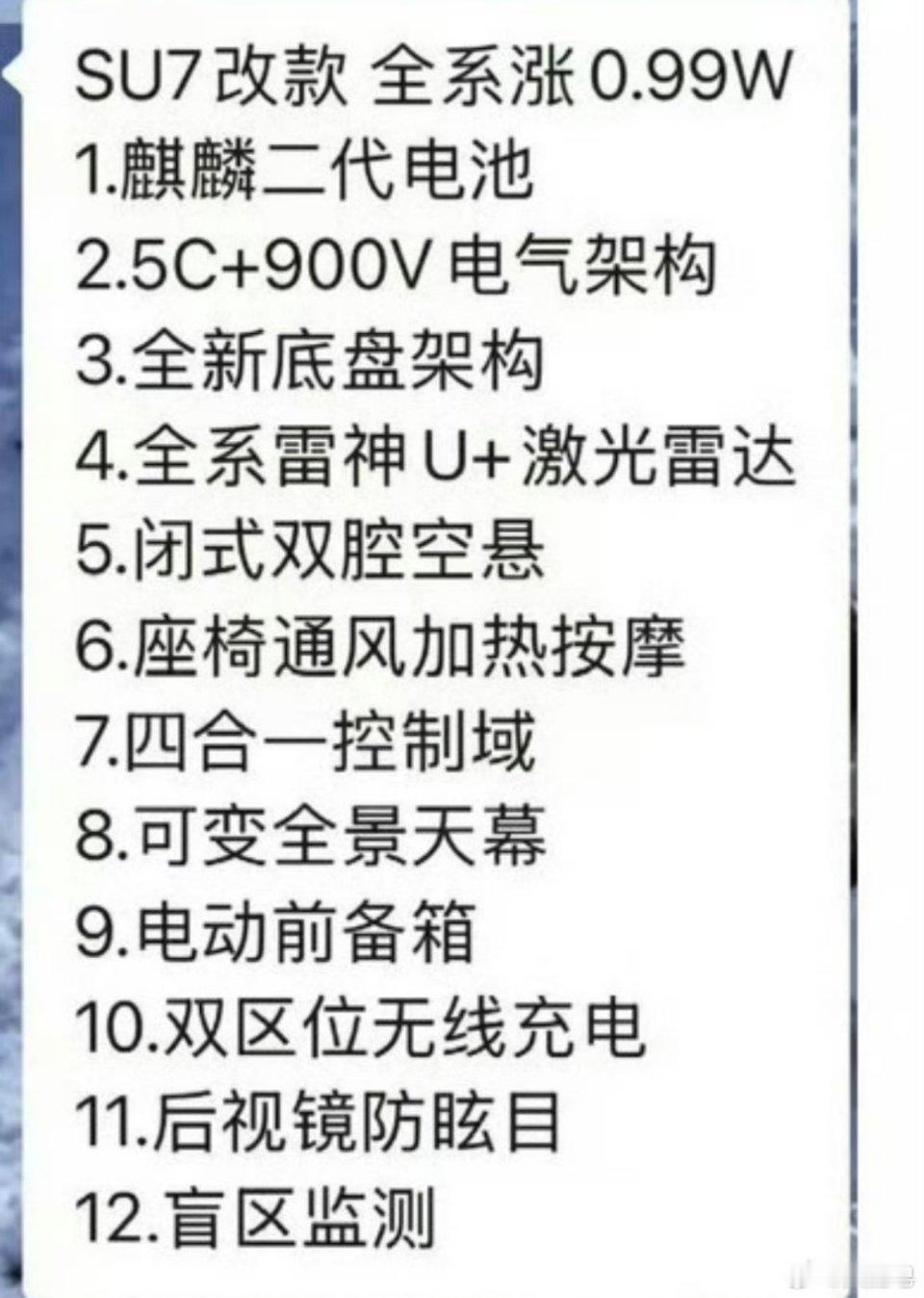 小米SU7改款也该来了,看了一下升级的点,涨个小1万问题也不大,相比下来反而更香。