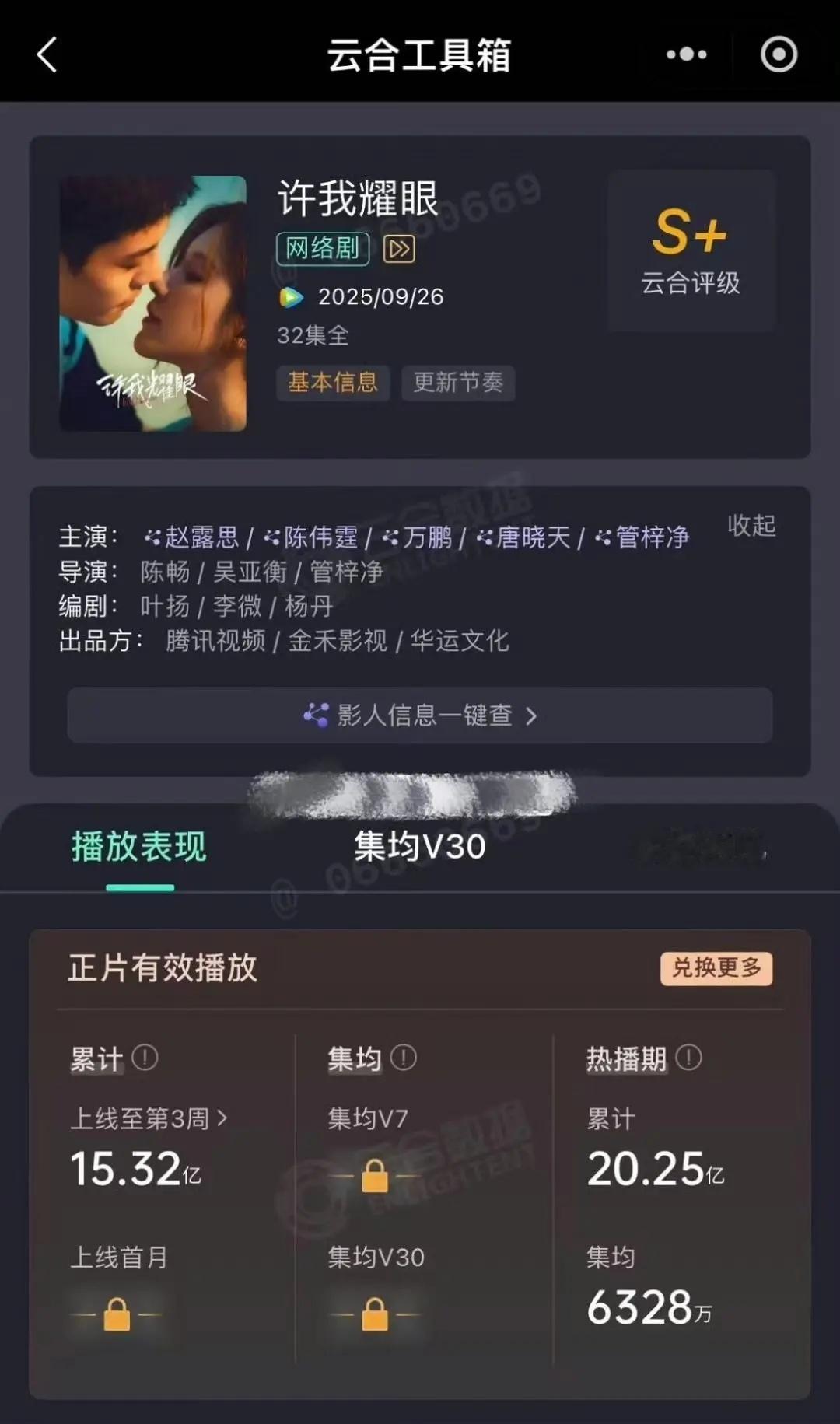 赵露思许我耀眼最终落点6328,云合成绩热播期集均🏆V30集均🏆许我耀眼