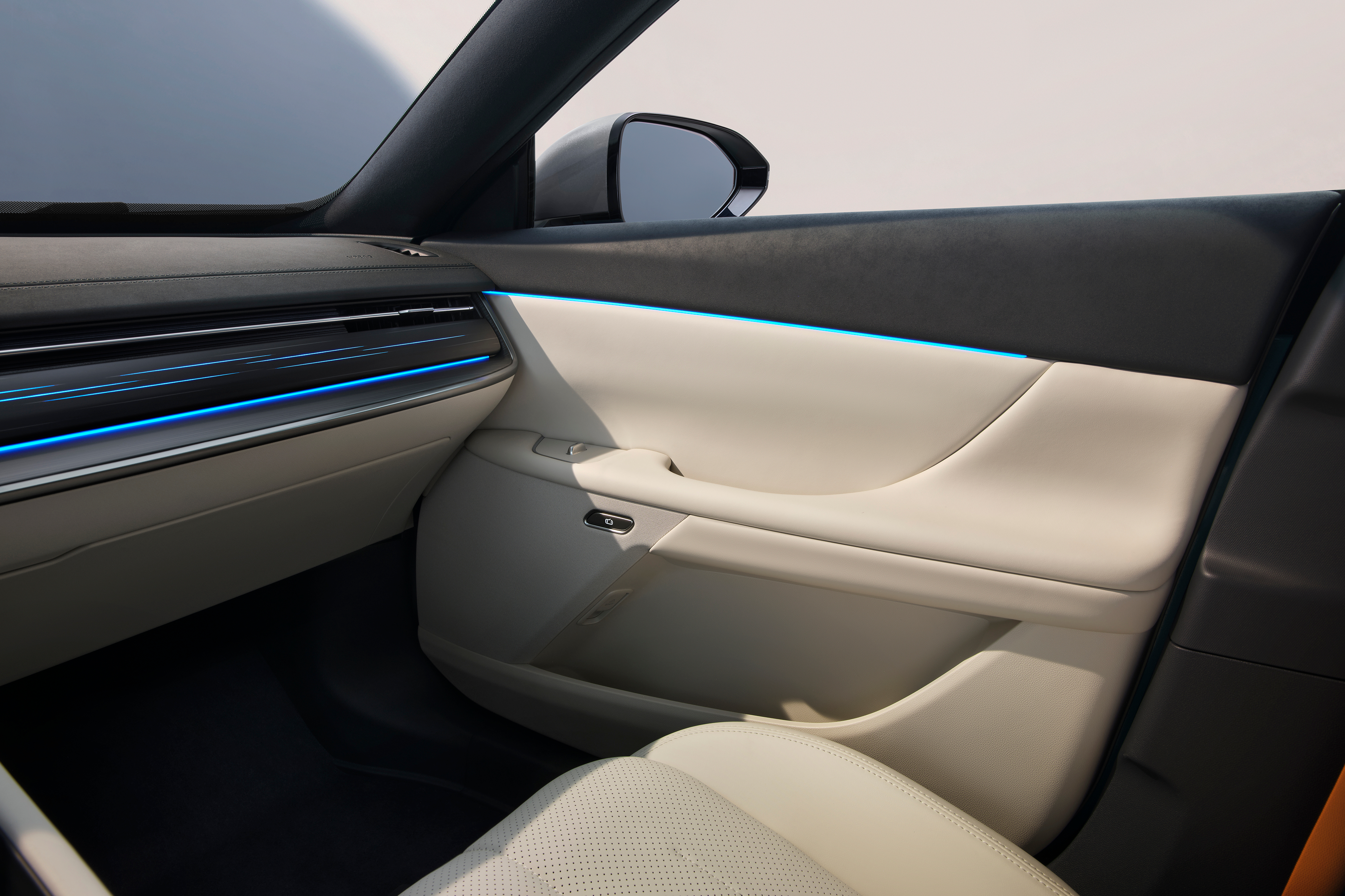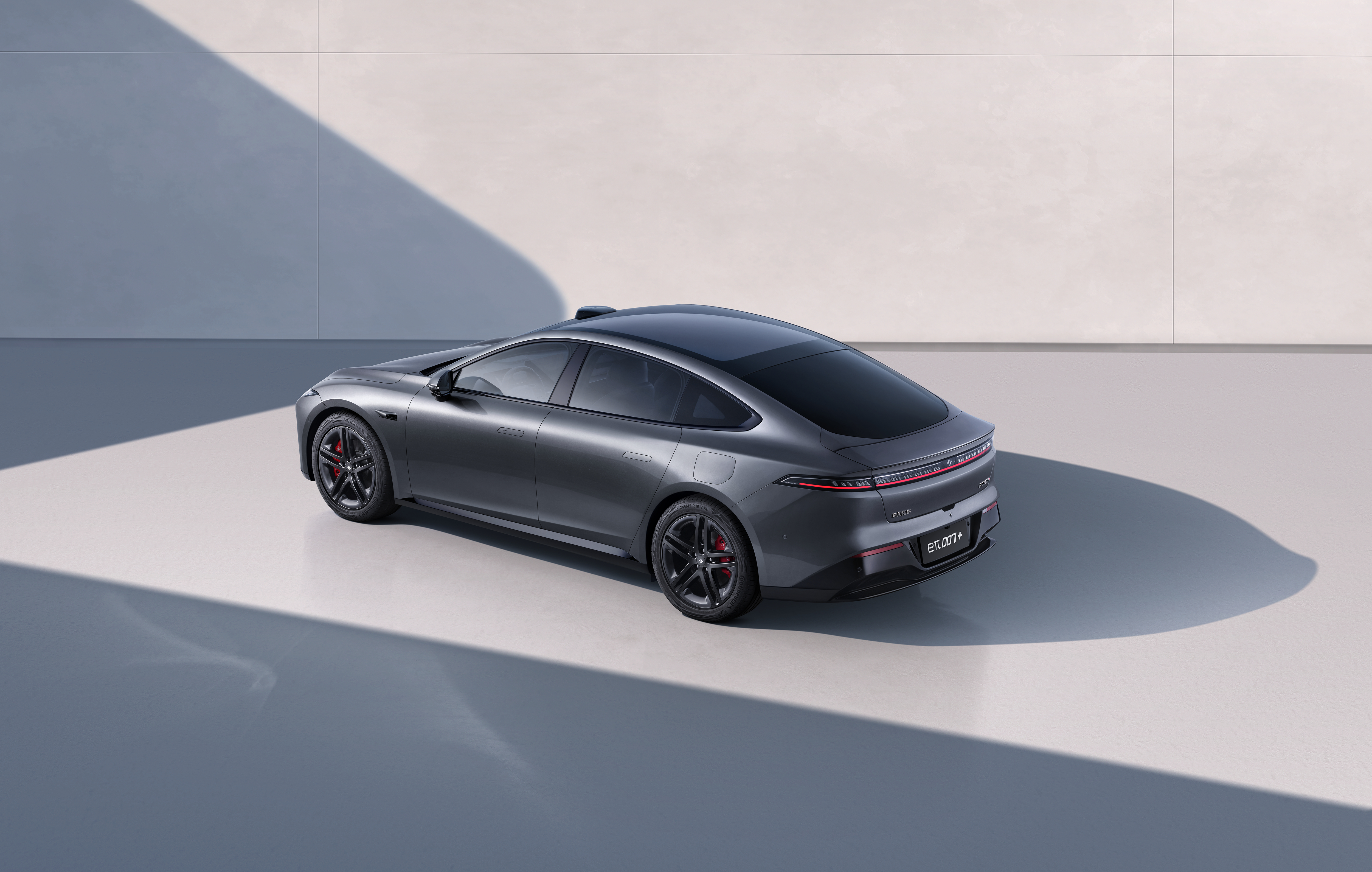 颜值上,这车是标准的轿跑造型,宽体低趴加溜背设计,还得了红点设计奖。风阻系数很低,只有0.209,对续航也有帮助。细节上像电动尾翼、电动掀背尾门这些很拉风的配置也都没缺席。