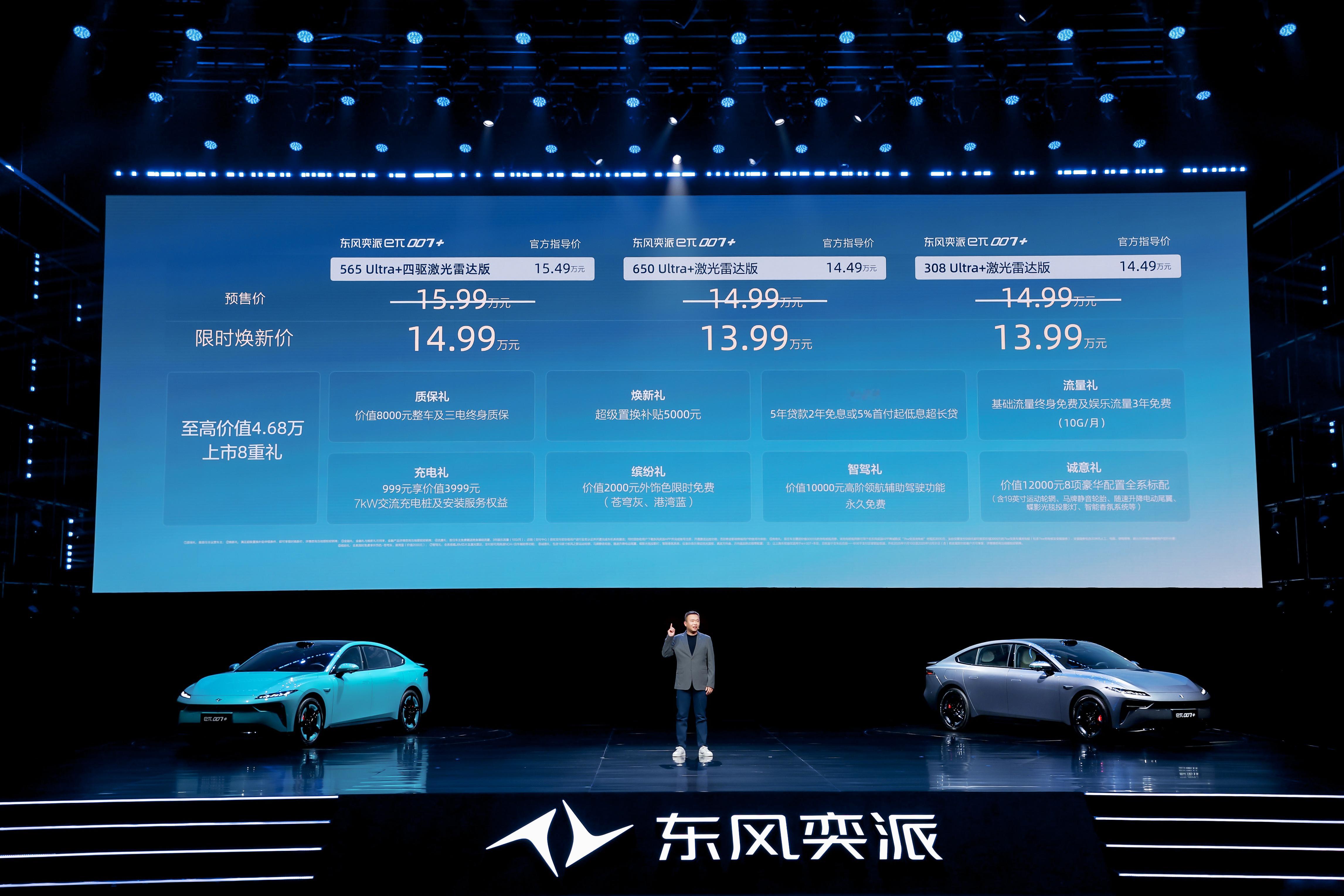 东风奕派这台新车eπ007+有点意思,官方给它起了个名号叫“智美超能轿跑”,简单说就是又好看又能打。最狠的是它的价格,限时起步价只要13.99万,而且号称入门配置就给你拉满,这点相当有诚意。