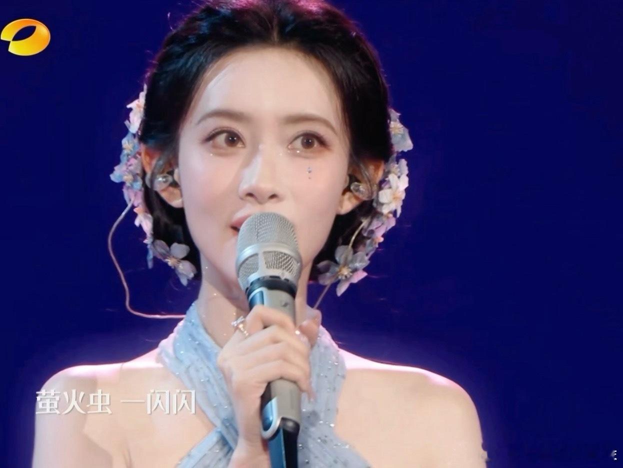 孟子义今晚的发型做的是刘亦菲最近很火的仿妆吧,不过孟子义没做贴头皮,把前面头发做了蓬松处理。