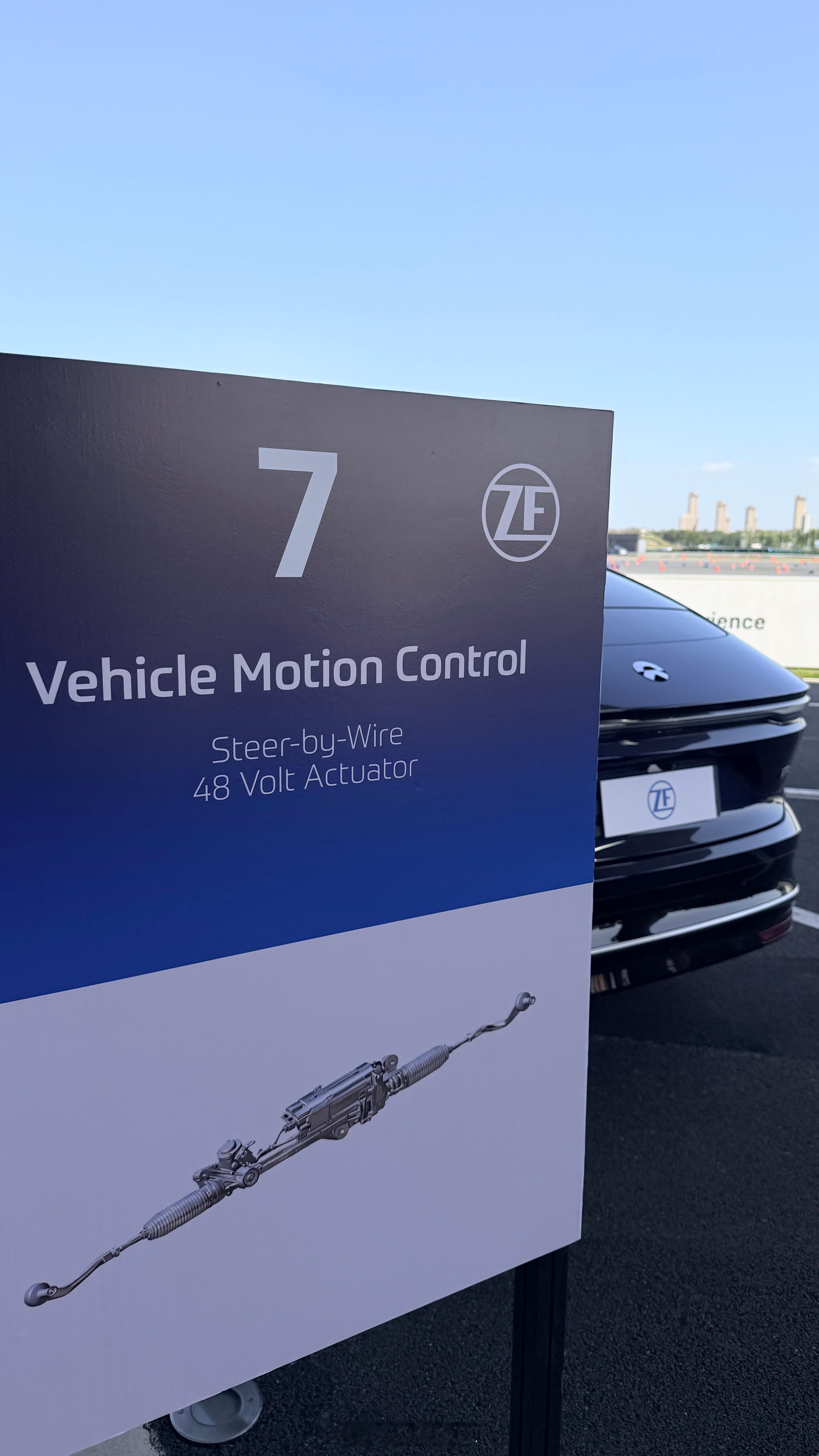 本次活动,采埃孚底盘领域共有三项概念和技术属于全球首发——在采埃孚全球范围内首次搭载于工程样车并投入赛道体验,其中包括底盘2.0、直驱式手感模拟器、基于48伏电压设计的线控转向-前轴执行器和电子机械制动器。另外有三项中国首发,其中包括EasyTurn悬架前桥系统、新一代智能底盘传感器和第三代高效率AKC。