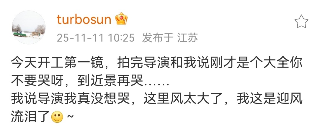 娱乐[超话]孙俪我这是迎风流泪了孙俪今天开工第一镜 孙俪今天开工第一镜!!期待!!