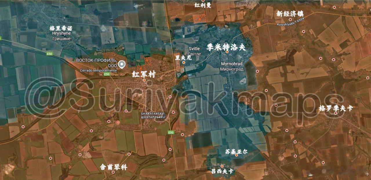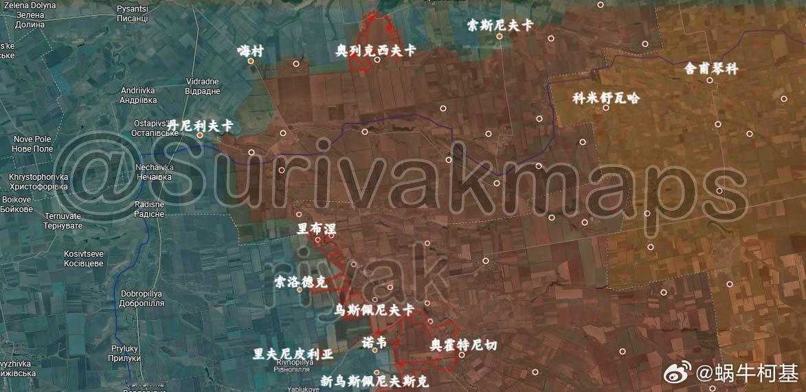 5、红军村:俄军结束了在红军村第八区和迪纳斯区的清剿行动。此外,俄军还占领了季米特洛夫北部的一处新养猪场。