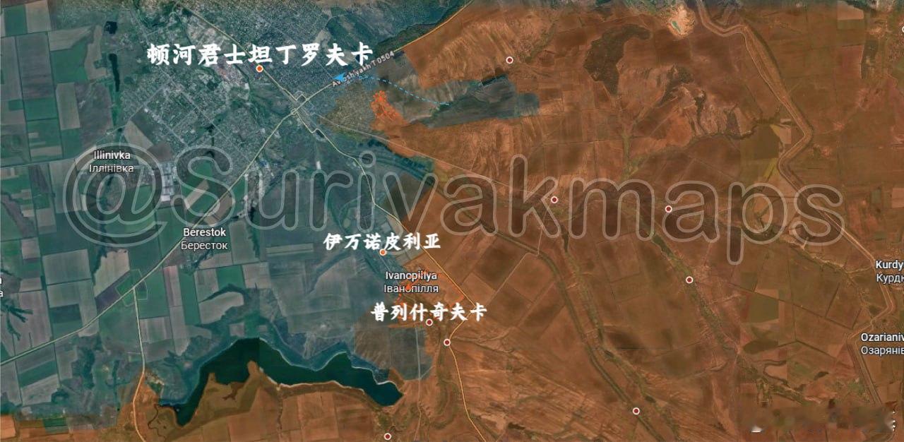 4、顿河君士坦丁罗夫卡:俄军完全占领了普列什奇夫卡和伊万诺皮利亚南部直至舍甫琴科街一带。此外,在乌克兰军队从东南郊区完全撤退后,俄军巩固了桑图里尼夫卡区的早期阵地。
