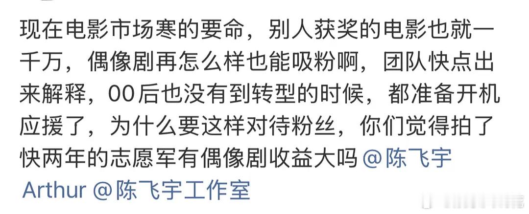 陈飞宇疑似推了告白去演电影[傻眼]目前陈飞宇粉丝在质问工作室,这是咋回事....
