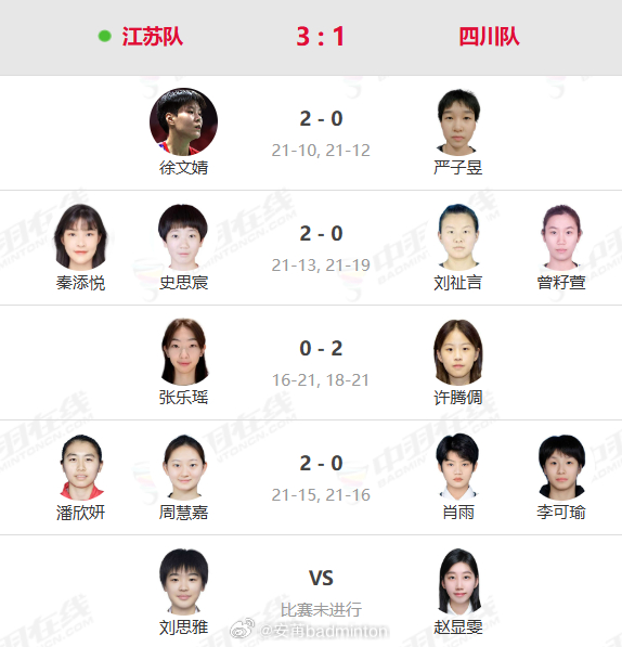 第十五届全运会羽毛球青年👧🏻女团决赛对阵出炉