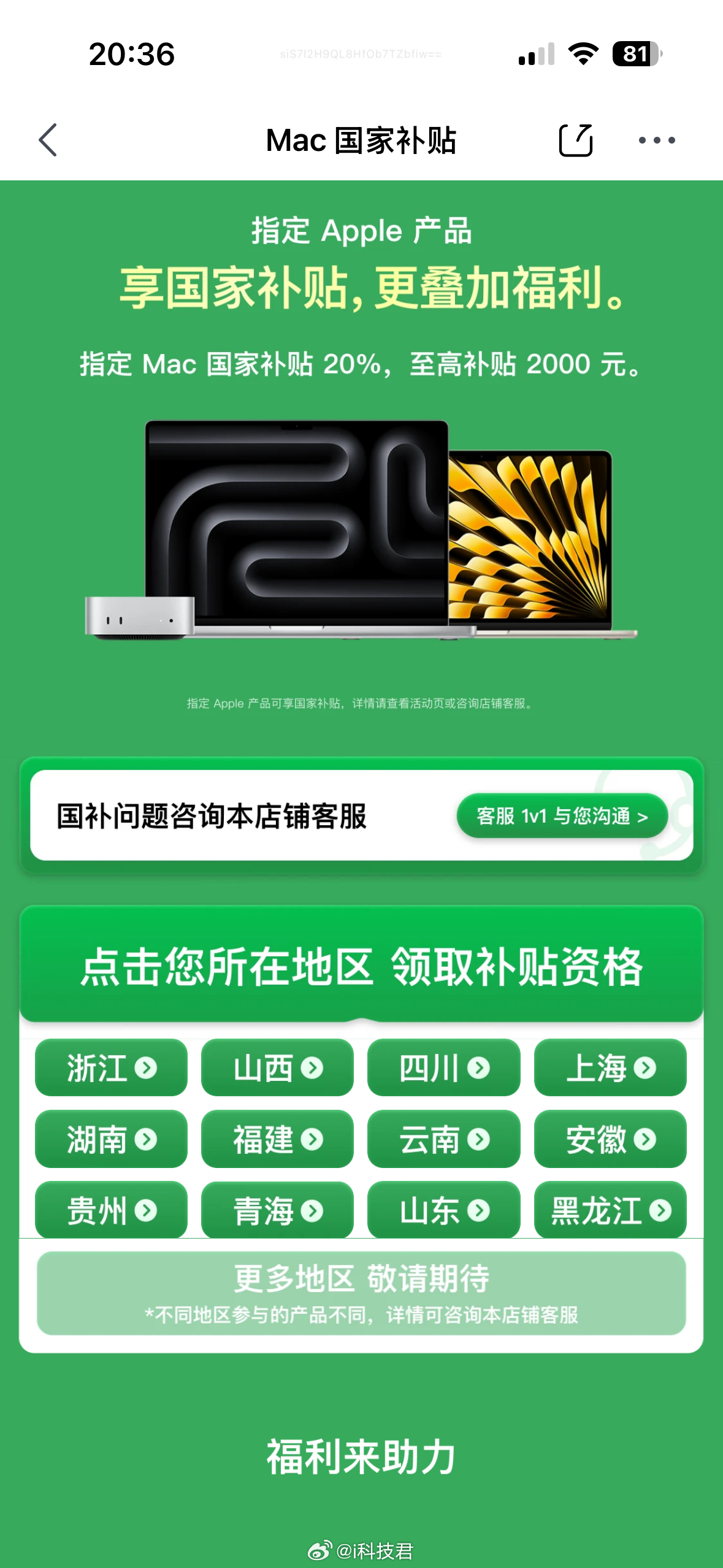 双十一,苹果M4 MacBook Air到手价格4959元起,但是只有部分地区支持国补,这价格也是挺好的,但是我领不到国补,看着别人低价买,自己买不到,那还是不买了[捂嘴哭]
