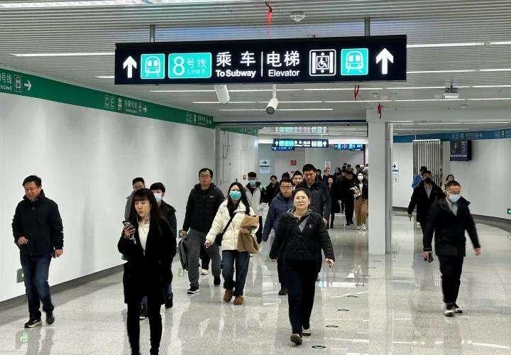 北京地铁8号线的含金量在上升【大红门站换乘开通后首个周一早高峰,高峰期上车要多等一两趟】大红门站开通8号线10号线无缝衔接上周六,北京地铁8号线大红门站正式开通启用,并实现与10号线换乘。至此,北京地铁8号线这条“地下中轴线”的35座车站全部开通,8号线大红门站还成为北京轨道交通路网中的第100座换乘站。今天(11月10日),该站迎来开通后的首个工作日早高峰,现场探访时注意到,在高峰时段,乘客上车还需要多等一两趟地铁。(新京报)