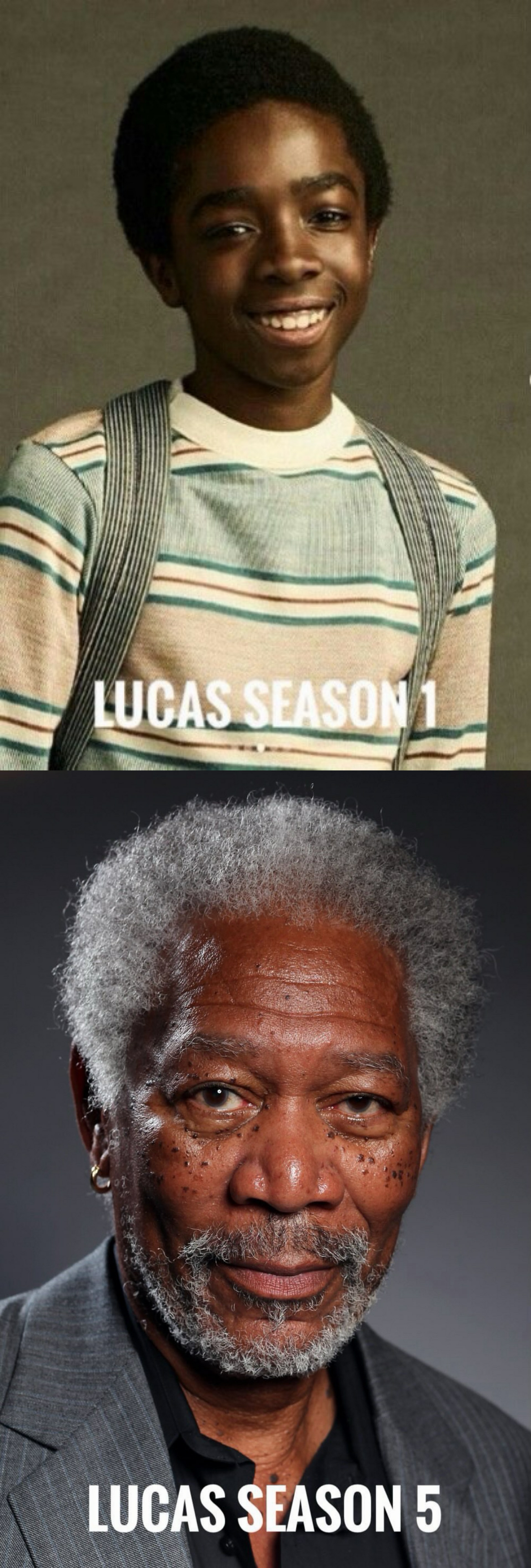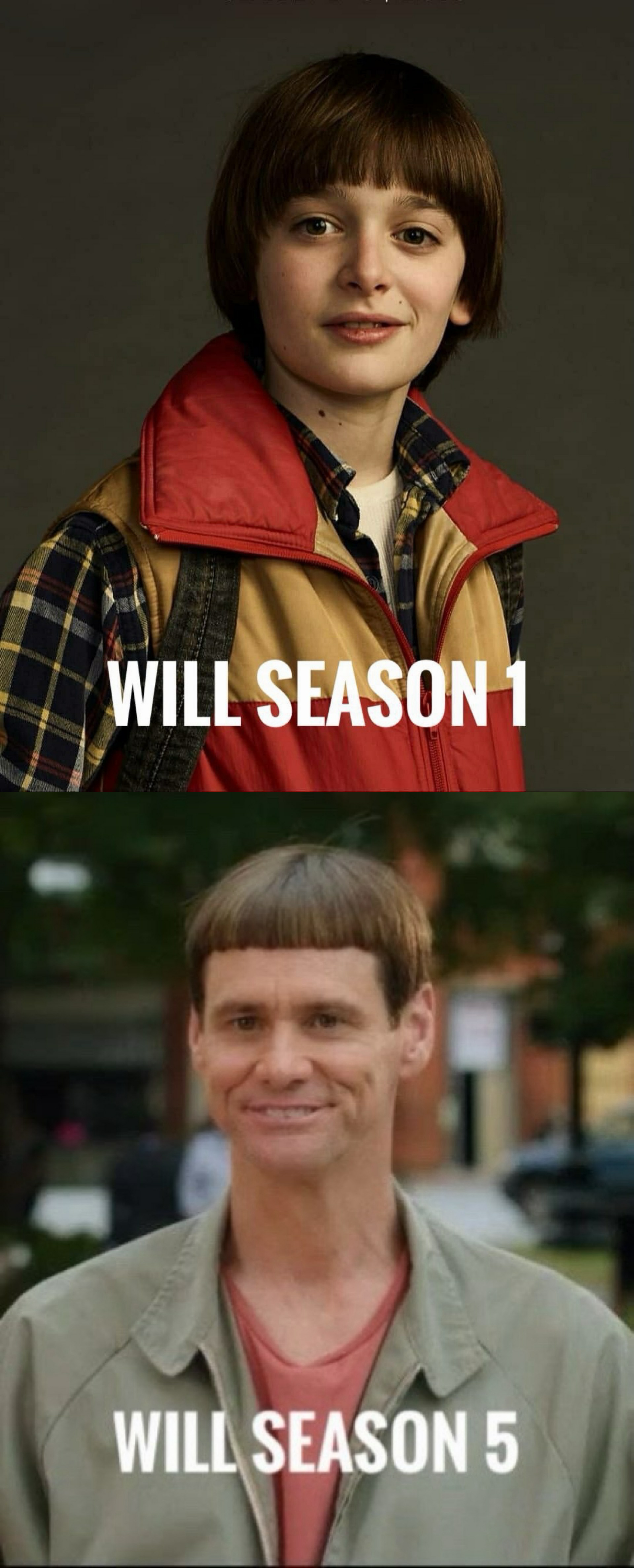 哈哈哈~~~怪奇物语主角团第一季和第五季造型对比……[哈哈][笑cry][允悲]