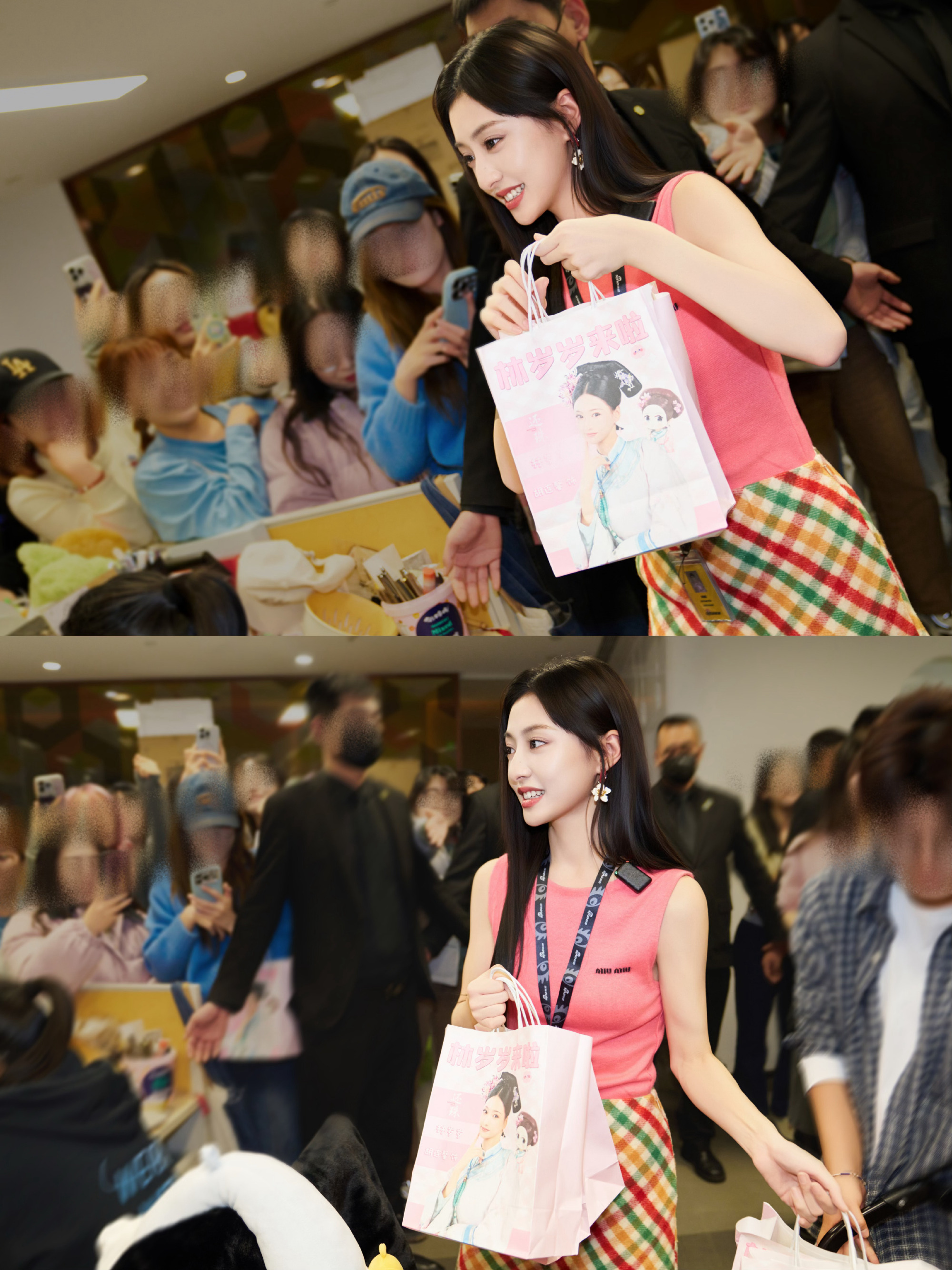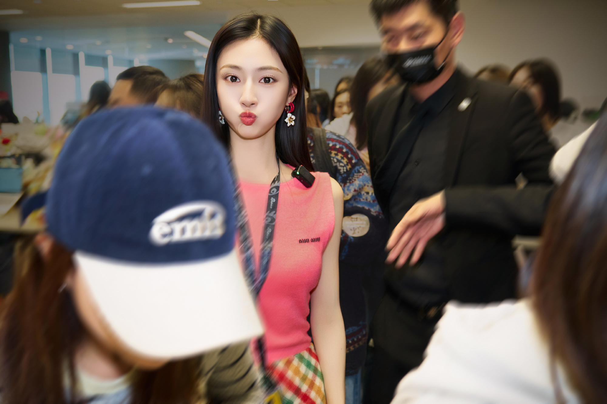 身着粉纱长裙搭配花朵盘发张予曦亮相微博视界大会