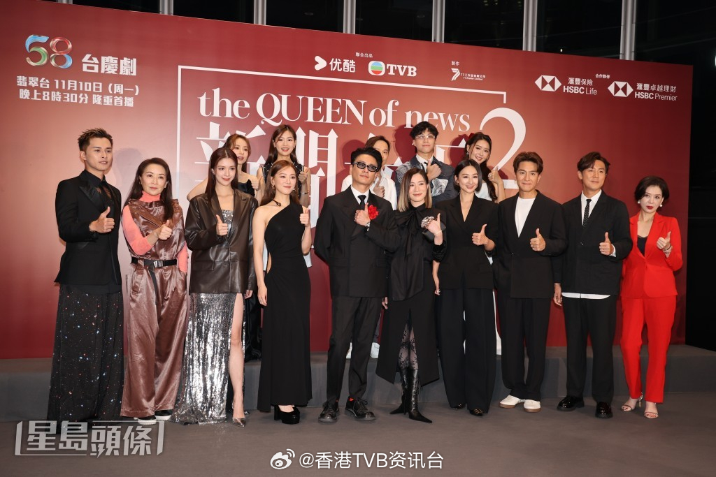 佘诗曼、黄宗泽、马国明、高海宁、谭俊彦、夏文汐、王敏奕、陈晓华等到中环出席《新闻女王2》宣传,众演员行CATWALK现身,「Man姐」佘诗曼霸气登场,其他女将同样打扮较保守,只有陈晓华较性感,以银色闪片裙亮相。