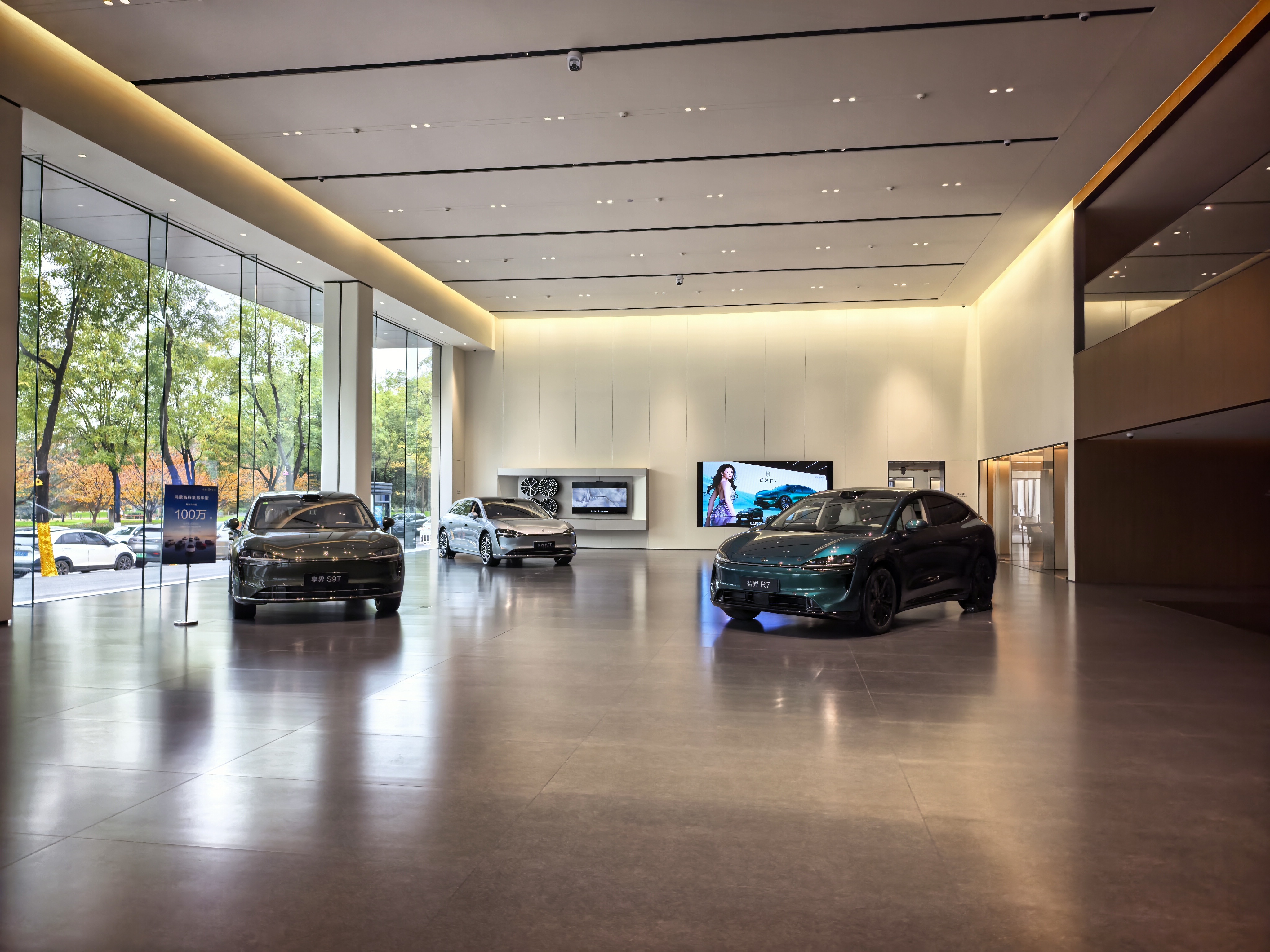 昨天路过一家鸿蒙智行店,里面有享界、智界、尊界三个品牌,这家店刚建好不久,面积很大,装修豪华亮堂,洗手间都很高级。店里放了6台S9T,我见过最多的一次[笑cry]