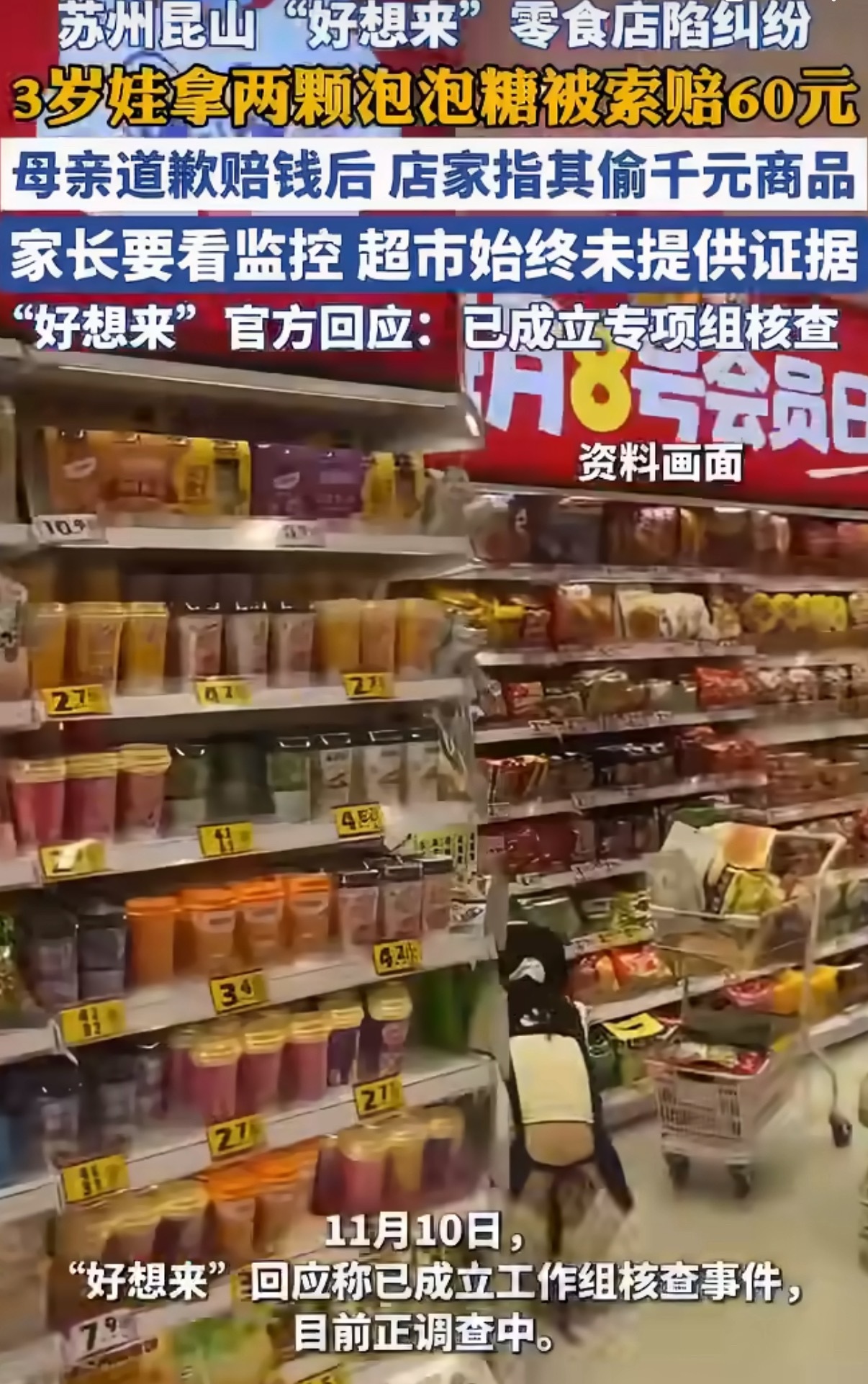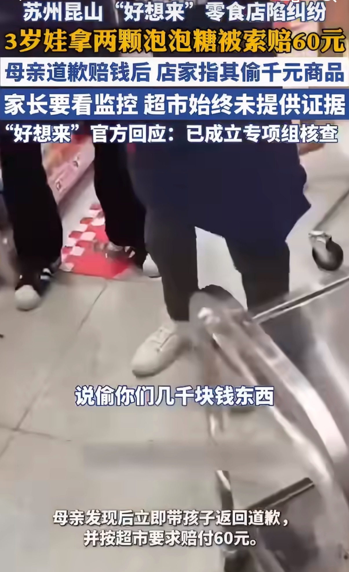 3岁娃拿两块泡泡糖母亲赔偿60元