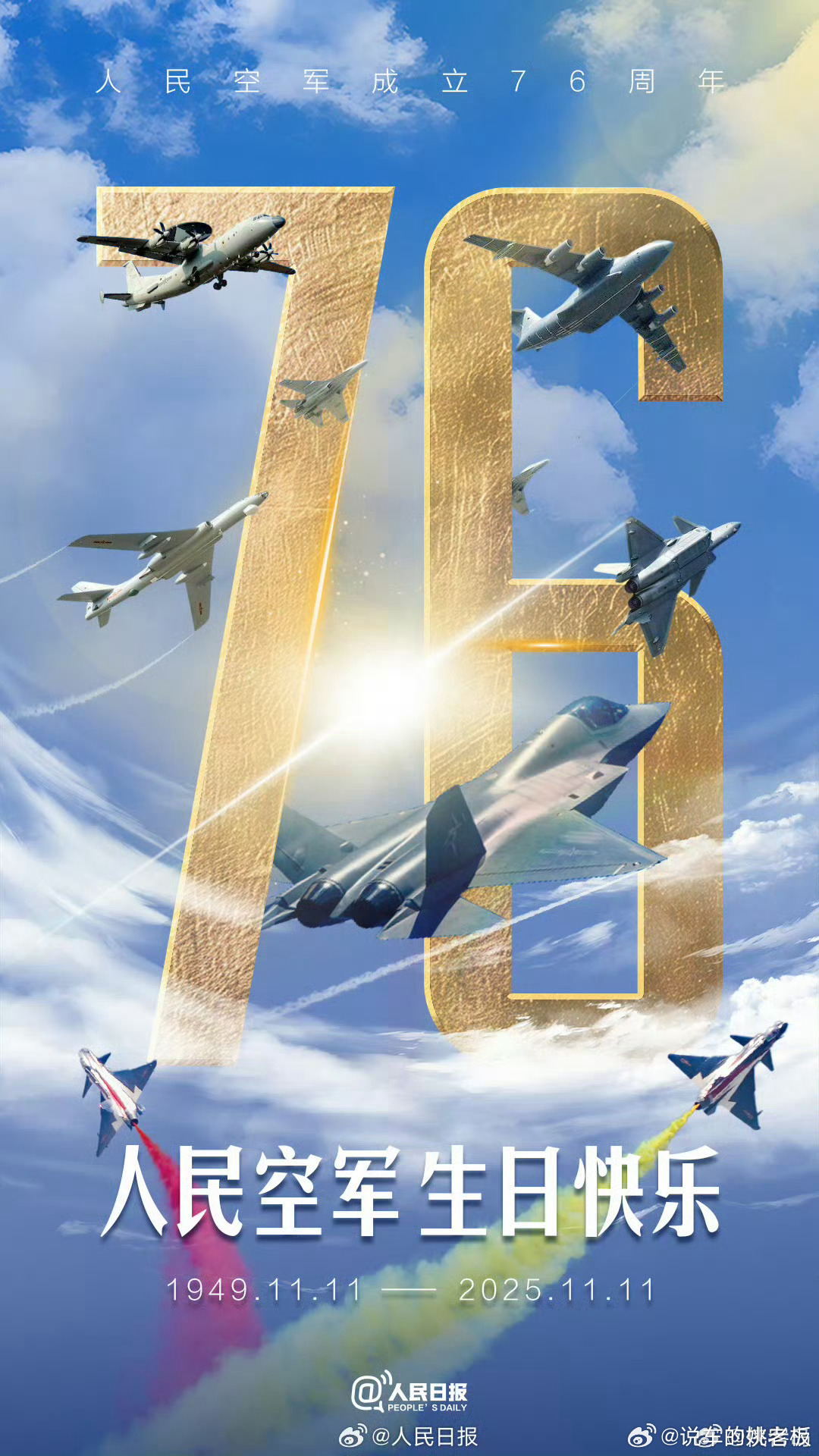 祝人民空军生日快乐,谢谢76年的“云端守护”!✈️
