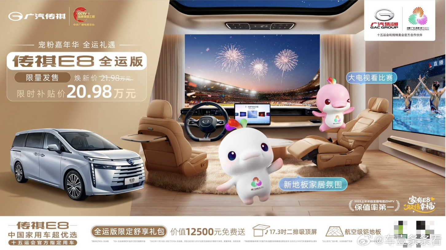 续航1200km,传祺 E8 全运版卷到20.98 万元!
