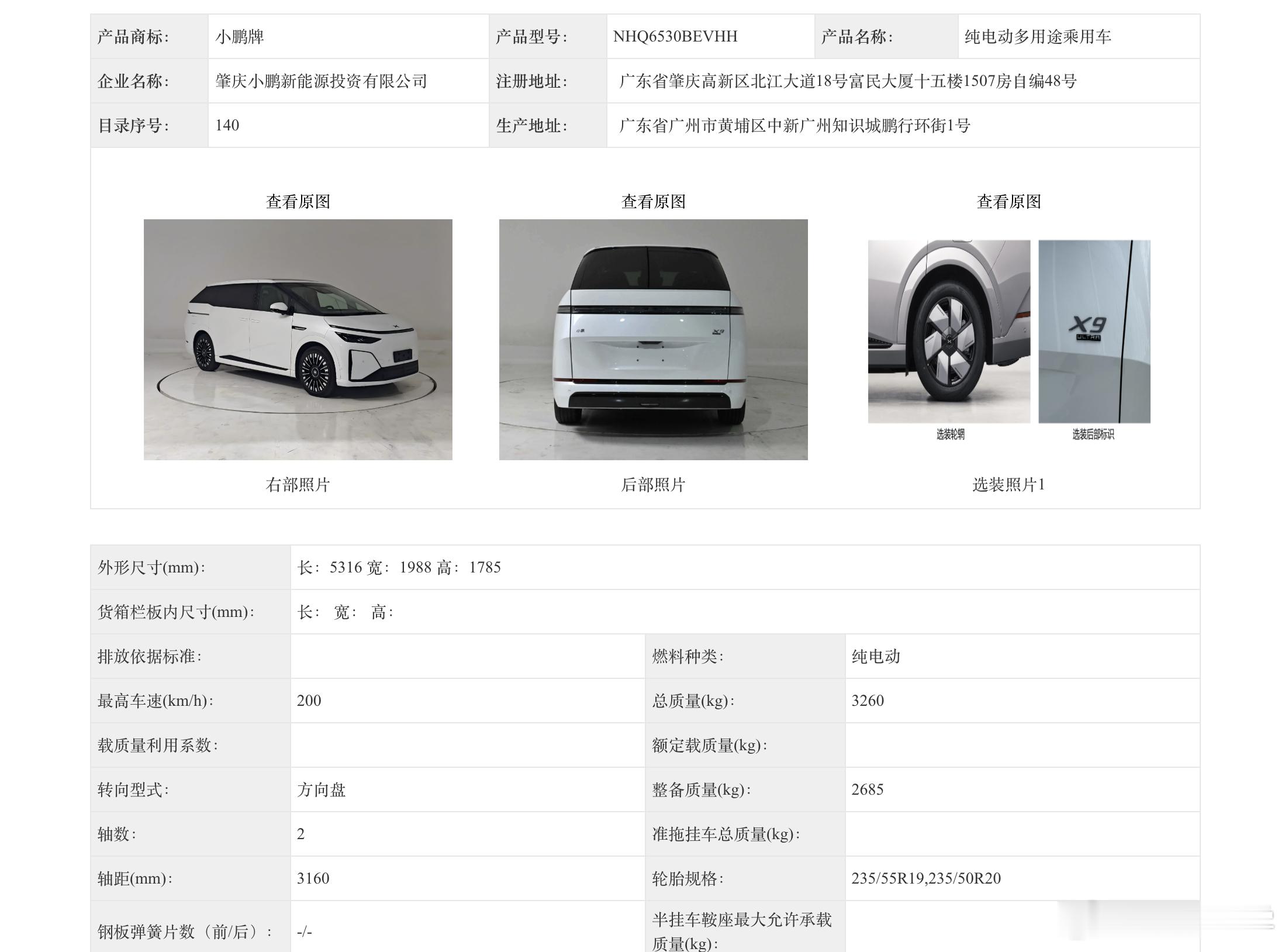 【新款小鹏X9纯电版来了,登陆工信部目录】
