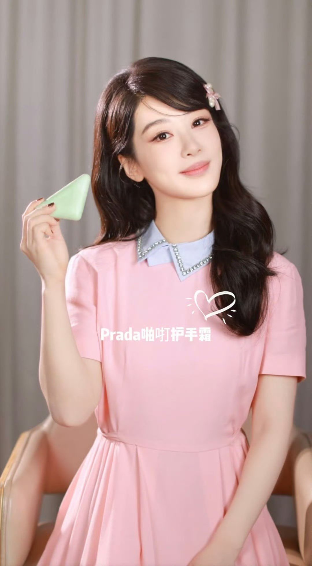 杨紫粉色蝴蝶结珍珠发卡杨紫粉色连衣裙look 哇紫妹这套好嫩 !!