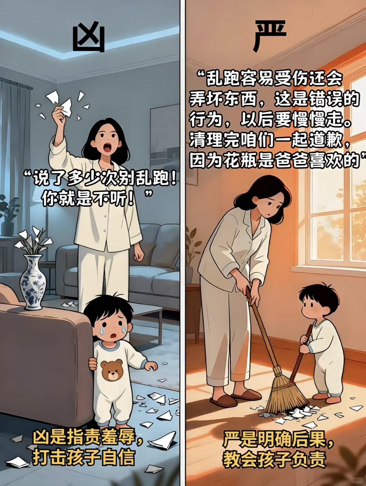 “ 📝妈妈们注意啦!“严”和“凶”真的不一样,千万别搞混~ “严”是有原则、有边界:明确告诉孩子“这件事不能做,因为会有危险”,犯错了会耐心教他改正,温柔但坚定✨ 孩子知道底线,反而更有安全感。 “凶”是情绪化、带指责:一不顺心就吼“你怎么又这样!”“跟你说过多少遍!”,把坏情绪撒在孩子身上,他只会害怕,却不知道错在哪… 真正的智慧,是严中有爱,用规则守护成长,用耐心代替脾气。你学会了吗?💡”[吃瓜群众][白眼] 家庭教育 亲子教育 育儿干货 智慧父母